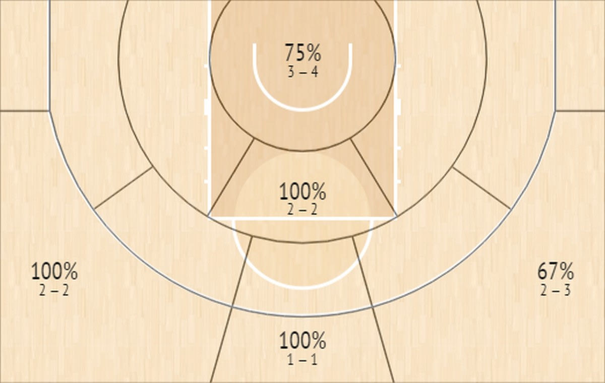 Αυτός που έθεσε το τέμπο ήταν ο Λο, ο οποίος έκανε ρεκόρ καριέρας με 27 πόντους. Παράλληλα όμως… εκτόξευσε και τους δικούς του αριθμούς. Συγκεκριμένα, ο Γερμανός γκαρντ σημείωνε 2 πόντους ανά κατοχή στο Pick and Roll όταν φέτος σημειώνει 1.02 πόντους ανά κατοχή σε τέτοια κατάσταση, αλλά και 1.75 πόντους ανά κατοχή σε καταστάσεις ένας εναντίον ενός (1.07 φέτος). Ιδού και το Shot Chart του από το παιχνίδι με τον Ολυμπιακό: