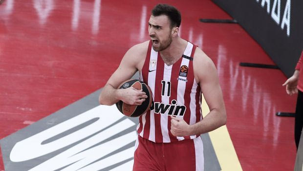 Ο Μιλουτίνοβ πανηγυρίζει σε αγώνα Ολυμπιακός - ΤΣΣΚΑ την σεζόν 2019/20 eurokinissi