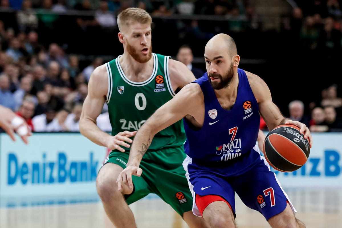 Ο Τόμας Γουόκαπ μαρκάρει τον Βασίλη Σπανούλη σε ματς Ζάλγκιρις - Ολυμπιακός Eurokinissi