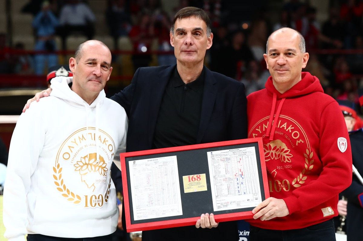 Ο Γιώργος Μπαρτζώκας είναι ο πολυνίκης προπονητής του Ολυμπιακού στην Stoiximan GBL με 168 θετικά αποτελέσματα, ισοφαρίζοντας τον Γιάννη Ιωαννίδη και Παναγιώτης και Γιώργος Αγγελόπουλος βράβευσαν τον Έλληνα τεχνικό πριν το τζάμπολ του αγώνα.
