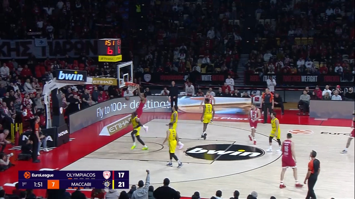 Ο Ολυμπιακός ξεκίνησε μουδιασμένα το παιχνίδι αμυντικά. Η Μακάμπι σκόραρε με άνεση, με το ματς να πηγαίνει σε υψηλό σκορ. Οι “ερυθρόλευκοι” όμως κατάφεραν άμεσα να φέρουν το ματς στα μέτρα τους. Και το οφείλουν σε μεγάλο βαθμό στον Σάσα Βεζένκοβ, ο οποίος σημείωσε 15 πόντους στην 1η περίοδο.