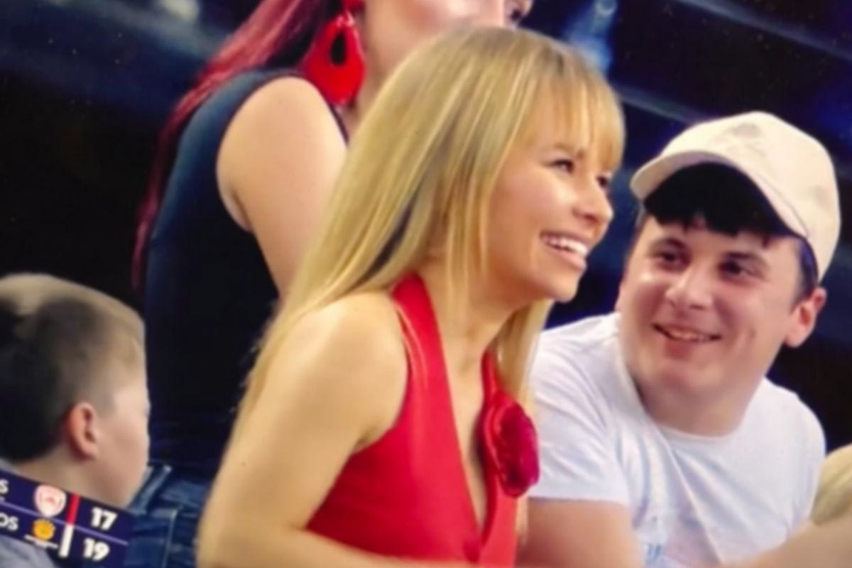 Με τον ύμνο του Ολυμπιακού πανηγύρισε τη νίκη των ερυθρολεύκων επί του Παναθηναϊκού AKTOR (71-65) η σύντροφος του Φίλιπ Πετρούσεβ, Τιάνα Σουμάκοβιτς.