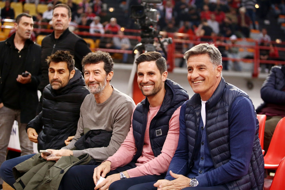 Ο προπονητής του Ολυμπιακού, Μίτσελ και ο Ισπανός μεσοεπιθετικός, Σέρτζι Κανός βρέθηκαν στο ΣΕΦ για να παρακολουθήσουν από κοντά την αναμέτρηση της μπασκετικής ομάδας με την Μπαρτσελόνα.