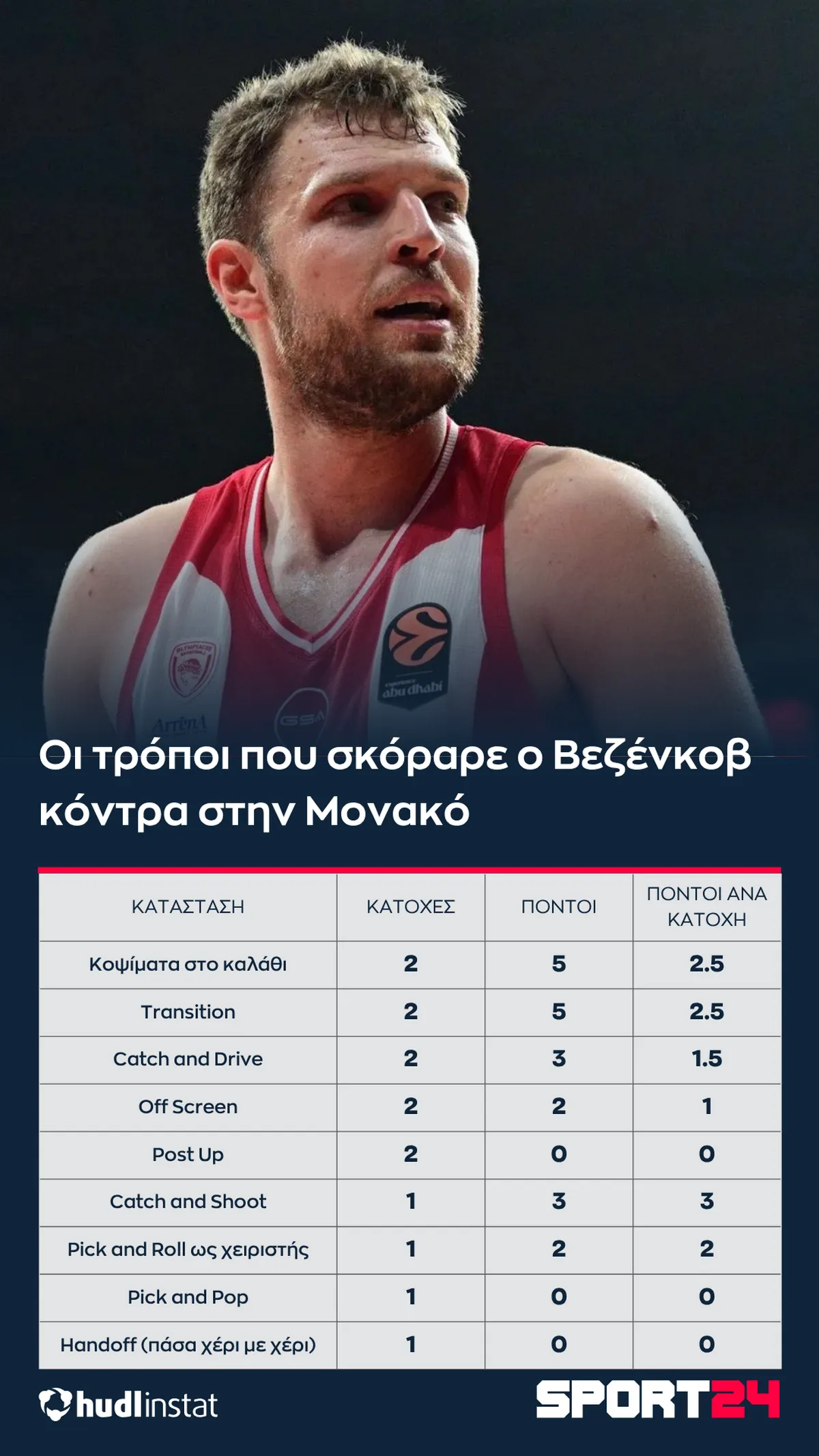Ο Στέφανος Μακρής αναλύει με την βοήθεια του Hudl Instat την νίκη του Ολυμπιακού επί της Μονακό στο Game 1 της σειράς. Ο Βεζένκοβ που έδωσε το σύνθημα, η βοήθεια στους κοντούς της Μονακό από τον Μπολόσομγκεϊμ και οι πολύτιμοι Τζόζεφ και Μιλουτίνοβ.