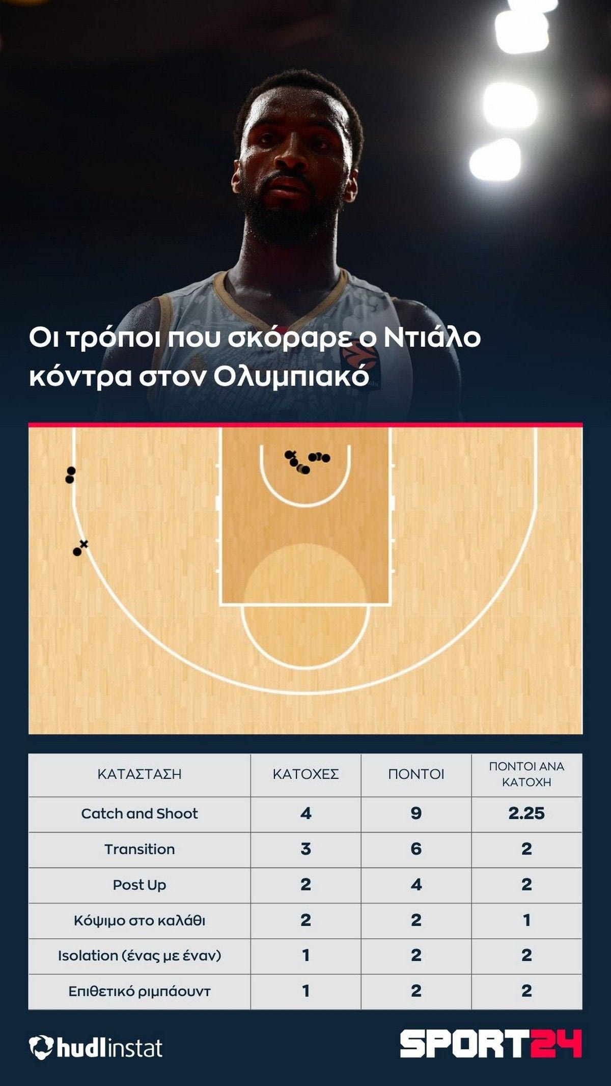 Εξίσου σημαντικός, βέβαια, ήταν και ο Άλφα Ντιάλο, που τελείωσε το ματς με 27 πόντους με 11/13 σουτ (3/4 τρίποντα) σε 35 λεπτά συμμετοχής.