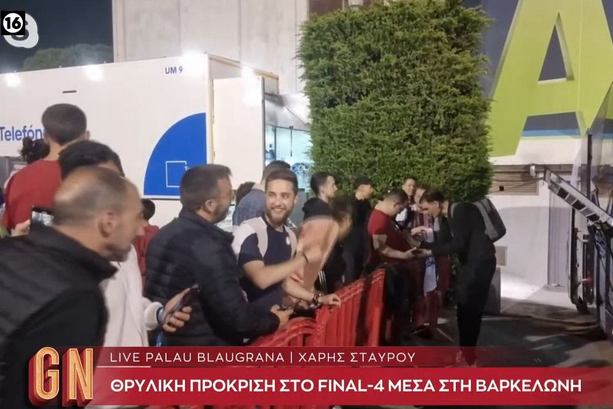 Οι “ερυθρόλευκοι” φίλαθλοι που βρέθηκαν στη Βαρκελώνη για να ενισχύσουν τις προσπάθειες της ομάδας τους περίμεναν με υπομονή έξω από το γήπεδο μετά το φινάλε του αγώνα για να συγχαρούν τον “αρχιτέκτονα” του Ολυμπιακού, Γιώργο Μπαρτζώκα.