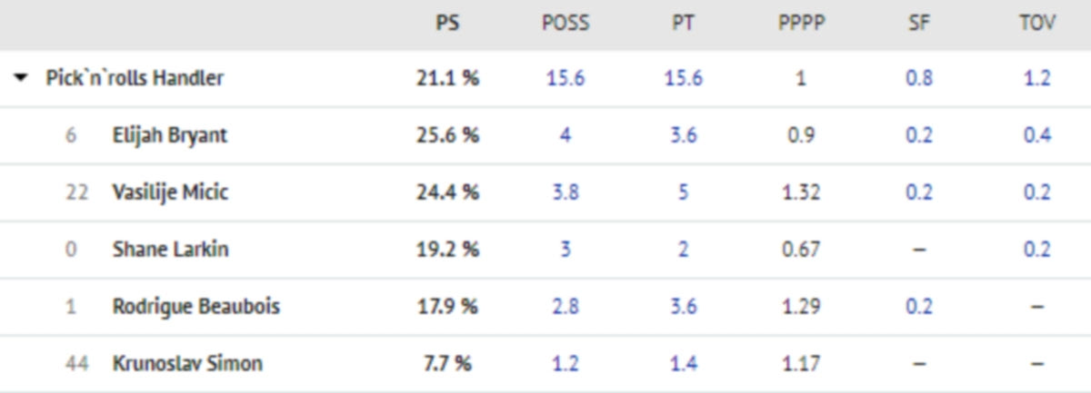 Ο κόουτς της Εφές τον εμπιστεύεται πολύ και του το αποδεικνύει κάθε φορά με πράξεις. Δεν είναι καθόλου τυχαίο πως ο πρώην συμπαίκτης των Γιάννη και Θανάση στους Μπακς είναι αυτός που στα πέντε ματς που ήταν παρών αναλαμβάνει να στήσει τα περισσότερα πικ εν ρολ ανά αγώνα. Ο ίδιος παίρνει το 25.6% των συνολικών, υπερτερώντας κατά 1.2% του Μίσιτς (24.4%), 6.4% του Λάρκιν (19.2%) και 7.7% του Μπομπουά. Κυρίως κινείται από αριστερά του σκριν γιατί τον βολεύει ξεκάθαρα.