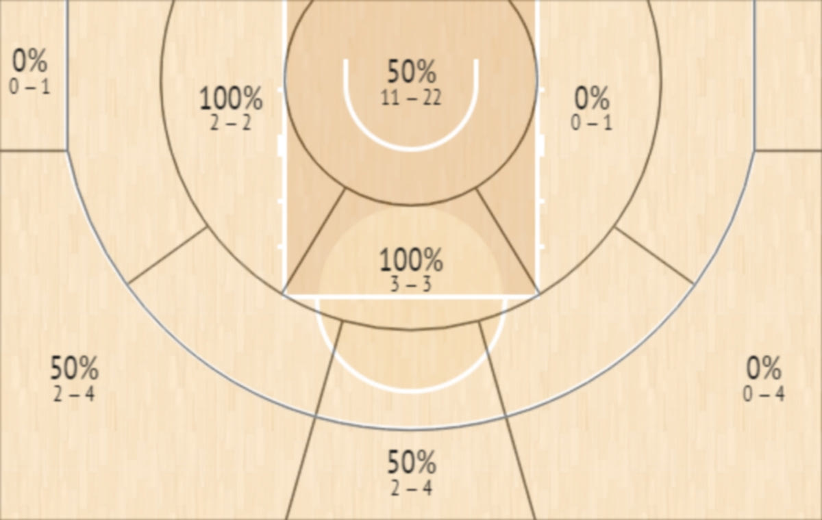 Τούτο δεν σημαίνει φυσικά ότι θα διστάσει να φτάσει μέχρι το τέλος της διαδρομής. Το 50% από 11/22 προσπάθειες (είτε με λέι απ είτε με κοντινά φλότερ στις απομονώσεις κατά βάση) φανερώνουν την αποτελεσματικότητά του παρά το μαρκάρισμα που δέχεται, αφού σε όλα είχε αντίπαλο πάνω του.