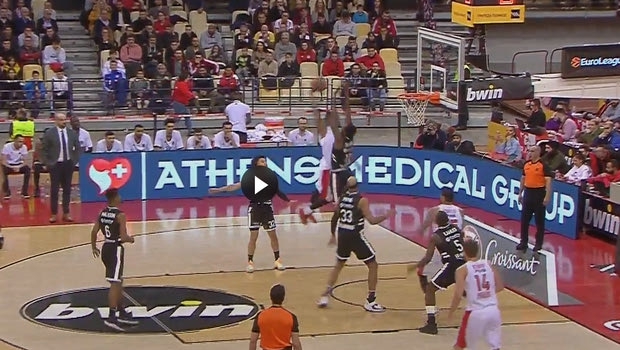 Ο Οκτάβιους Έλις προσέφερε το απόλυτο highlight στον αγώνα του Ολυμπιακού με τη Βιλερμπάν, με το κάρφωμα που έκανε. Θύμα του ο Λιβιό Ζαν Σαρλ.