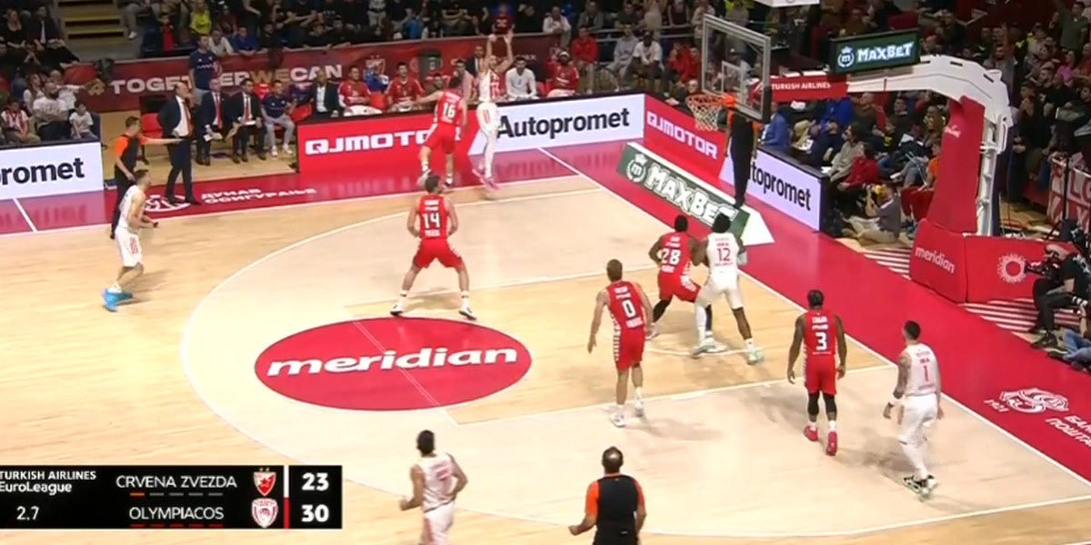 Ο Ερυθρός Αστέρας είχε μία συγκεκριμένη στρατηγική στην άμυνά του, η οποία ξεκινάει από την πίεση στην μπάλα. Γενικά οι Σέρβοι έχουν την λογική του “Pack the Paint”. Γεμίζουν δηλαδή την ρακέτα με κορμιά, υποχρεώνοντας μία ομάδα να την νικήσει βάζοντας τα σουτ από την περιφέρεια. Ο Ολυμπιακός είναι καλός στο να το διαβάζει αυτό. Κυκλοφόρησε σωστά την μπάλα. Έβγαλε αρκετά ελεύθερα σουτ, τα οποία και έβαλε. Βασικά, έβαλε (σχεδόν) όλα τα σουτ, για αυτό και έχτισε ένα προβάδισμα. Το θέμα όμως ήταν πως… παραήταν καλός. Αυτή η ευστοχία θα συνεχιζόταν στον ίδιο βαθμό.