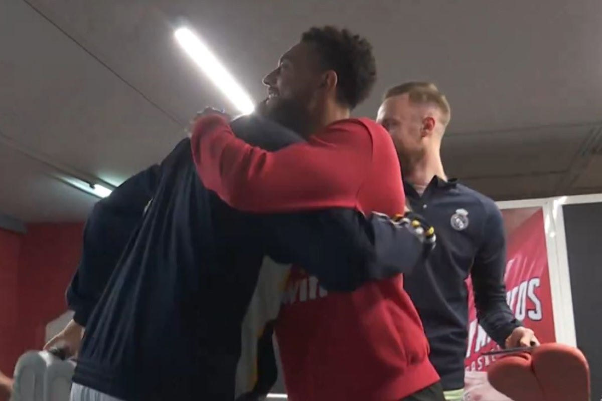 Αγκαλιές και χαμόγελα μοιράστηκε ο Νάιτζελ Γουίλιαμς-Γκος με τους παίκτες της Ρεάλ Μαδρίτης, πριν από το παιχνίδι του Ολυμπιακού με τον ισπανικό σύλλογο (21:15, Novasports Prime, Match Center από το SPORT24).