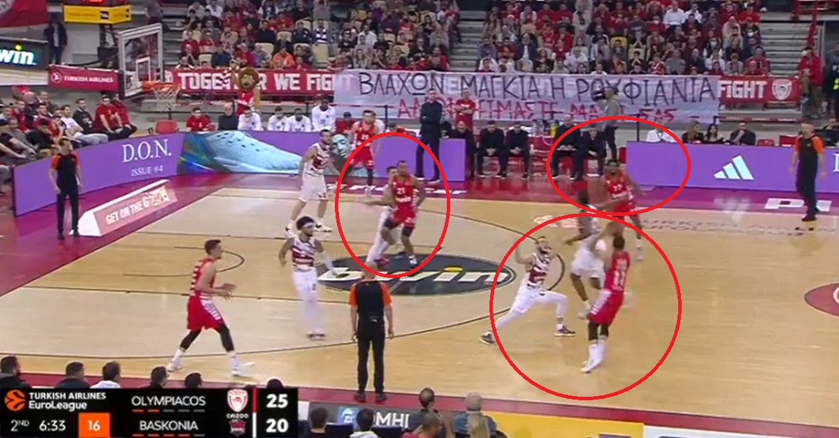 Αυτό ήταν που έφερε την – πιο γρήγορη από ότι συνήθως – είσοδο του Κώστα Σλούκα στο παρκέ (15 πόντοι και 6 ασίστ, από τις οποίες ο Ολυμπιακός πήρε 13 πόντους), με τον διεθνή γκαρντ να δείχνει από νωρίς ότι θα ορίσει τις εξελίξεις, χτυπώντας στην βασική αδυναμία των Βάσκων: Την άμυνα στο Pick and Roll.