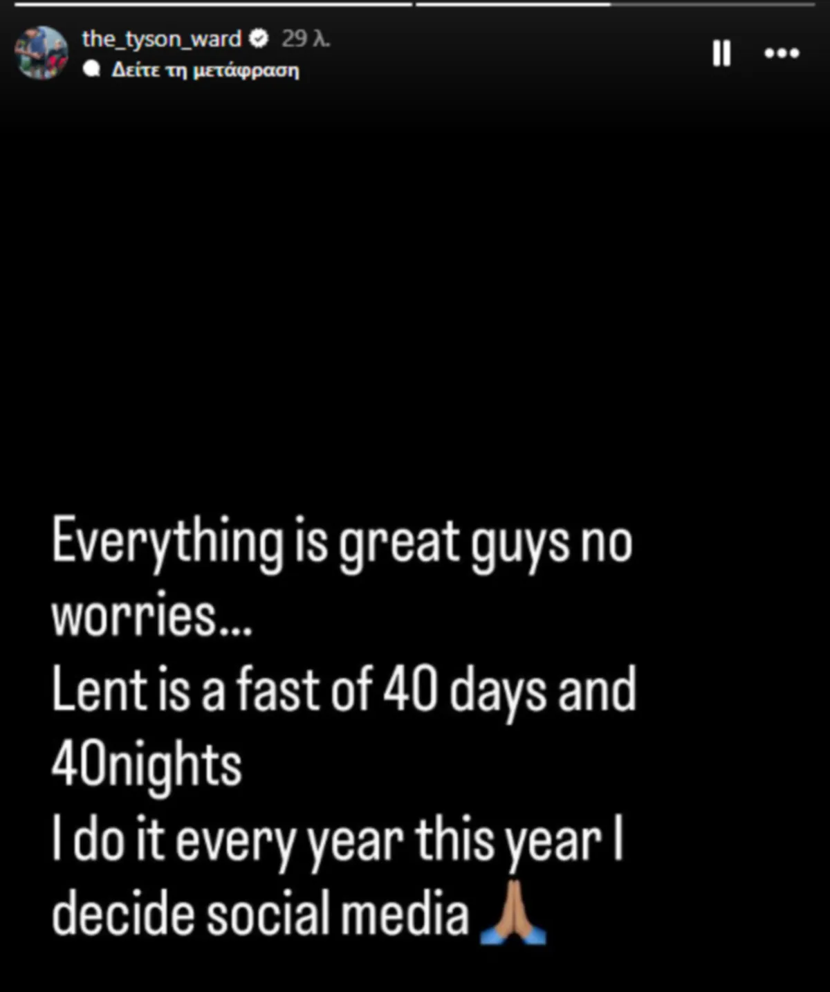 Στο πλαίσιο αυτής, λοιπόν, θα απέχει από κάθε διαδικτυακή πλατφόρμα επικοινωνίας, όπως ενημέρωσε ο ίδιος μέσα από story του.
