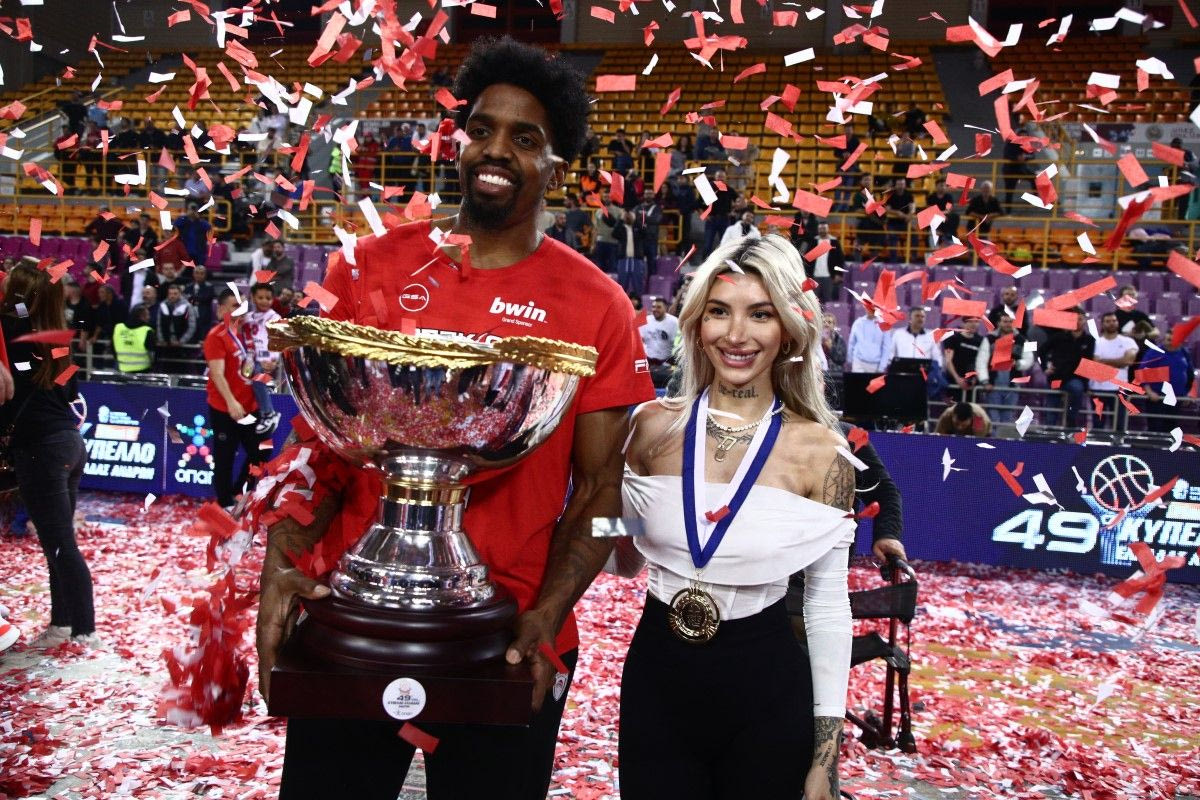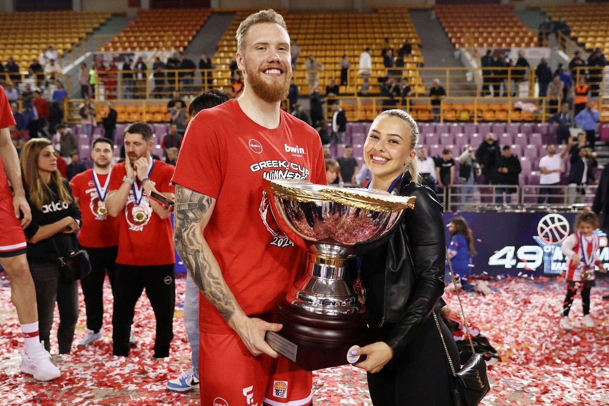Ολυμπιακός: Ο Τόμας Γουόκαπ σήκωσε το Κύπελλο Ελλάδας ΟΠΑΠ μαζί με την Εστρέλα Νούρι