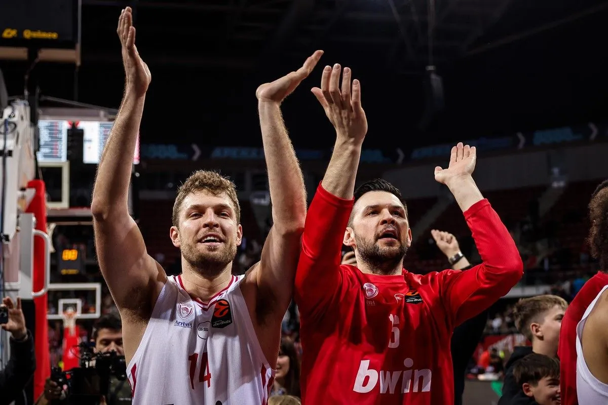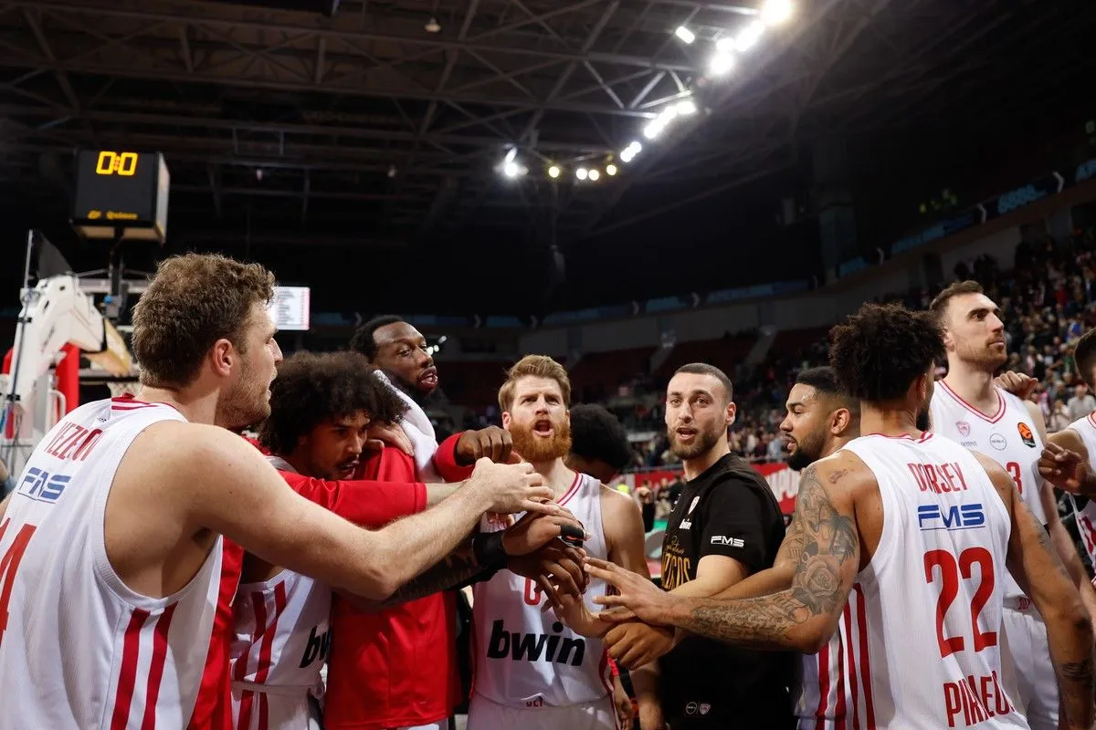 Μετά το φινάλε της αναμέτρησης, οι παίκτες και ο κόσμος των ερυθρολεύκων έγιναν ένα στην Arena 8888, πανηγυρίζοντας μαζί το αποτέλεσμα της ομάδας κόντρα στους Ισραηλινούς.