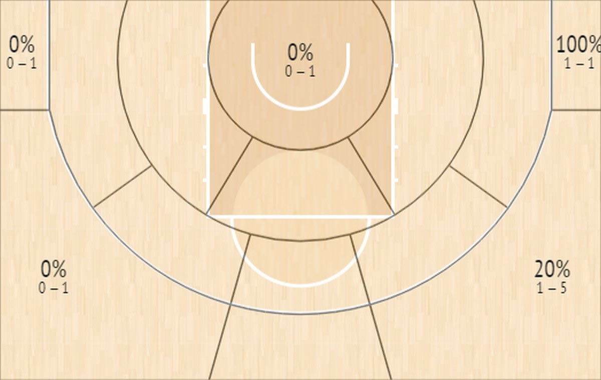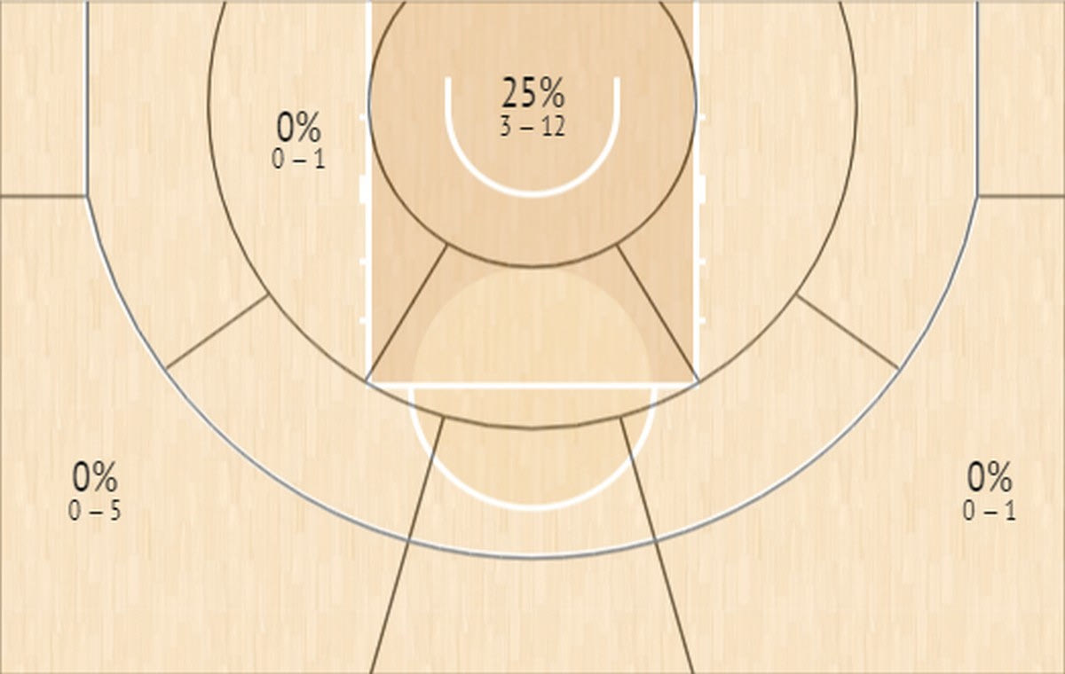 Όποιος είδε το παιχνίδι ξέρει ότι ουσιαστικά κρίθηκε στην πρώτη περίοδο. Εκεί που ο Ολυμπιακός κυριάρχησε απόλυτα και ξέφυγε με 35-8, διαλύοντας την Μακάμπι και στις δύο πλευρές του παρκέ. Όλα βέβαια ξεκίνησαν από την άμυνα των “ερυθρόλευκων”, που κράτησε την Μακάμπι στα 3/19 σουτ (3/13 δίποντα, 0/6 τρίποντα). Σύμφωνα μάλιστα με το InStat Scout και τα 19 σουτ της Μακάμπι στην πρώτη περίοδο ήταν μαρκαρισμένα. Ιδού και το Shot Chart των ισραηλινών στην πρώτη περίοδο.
