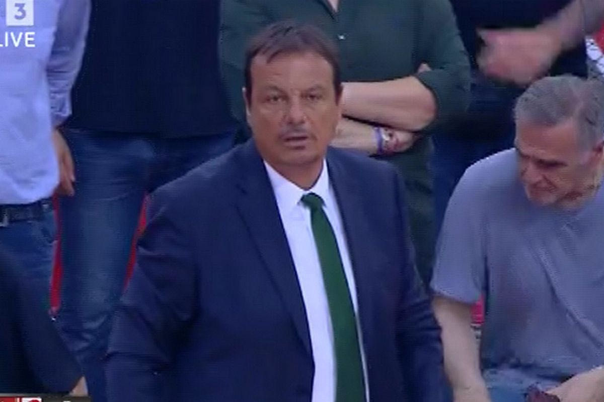 Ο Εργκίν Αταμάν κάλεσε τάιμ-άουτ για να μιλήσει στους παίκτες του 84 δευτερόλεπτα μετά από το τζάμπολ του τέταρτου τελικού της Stoiximan Basket League ανάμεσα σε Ολυμπιακό και Παναθηναϊκό AKTOR.
