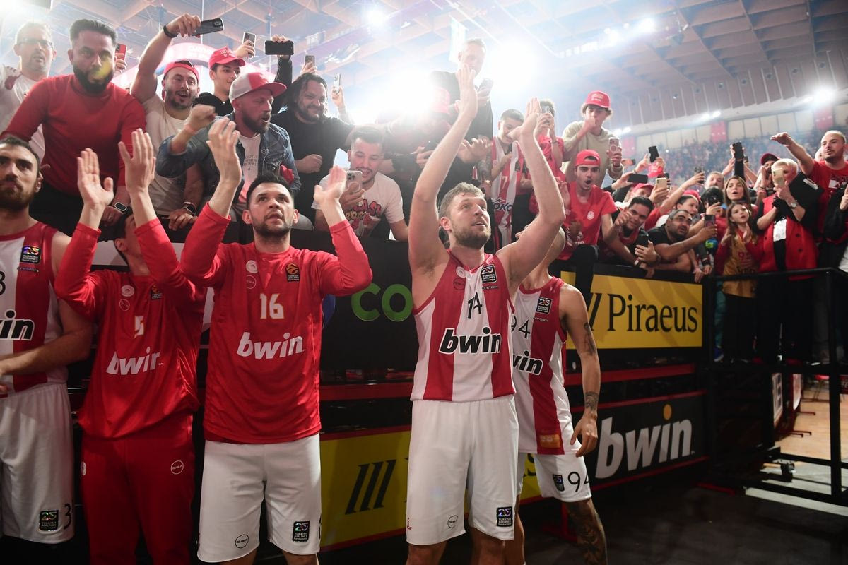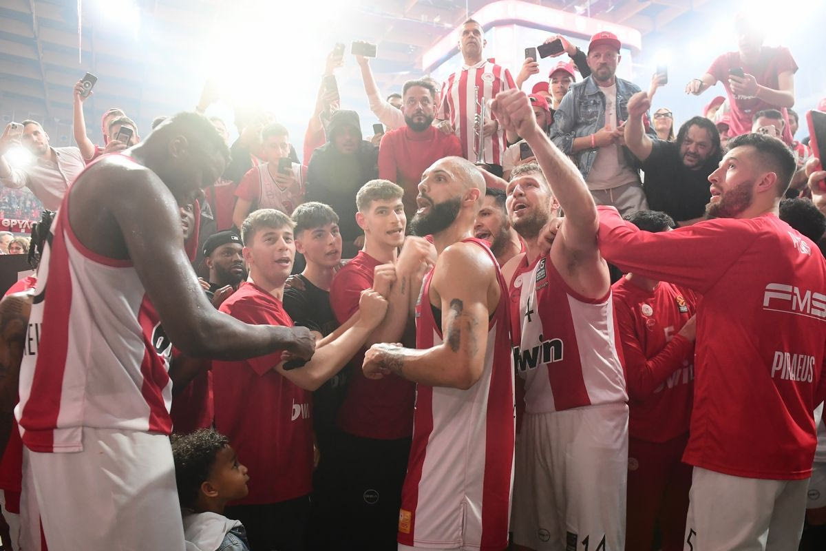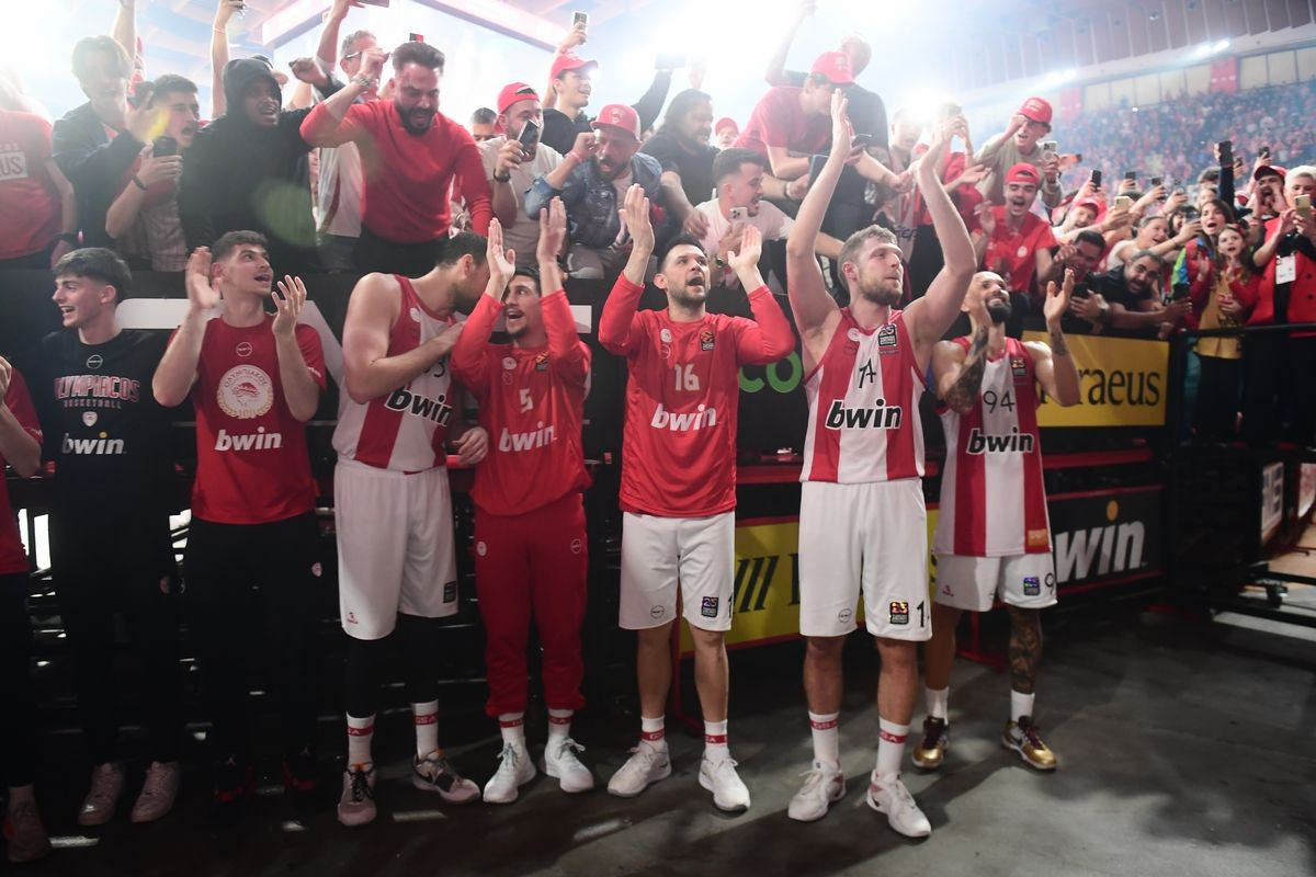 Οι παίκτες του Ολυμπιακού στάθηκαν μπροστά στον κόσμο τους και πανηγύρισαν ξέφρενα τη νίκη στο ντέρμπι αιωνίων με τον Παναθηναϊκό AKTOR.