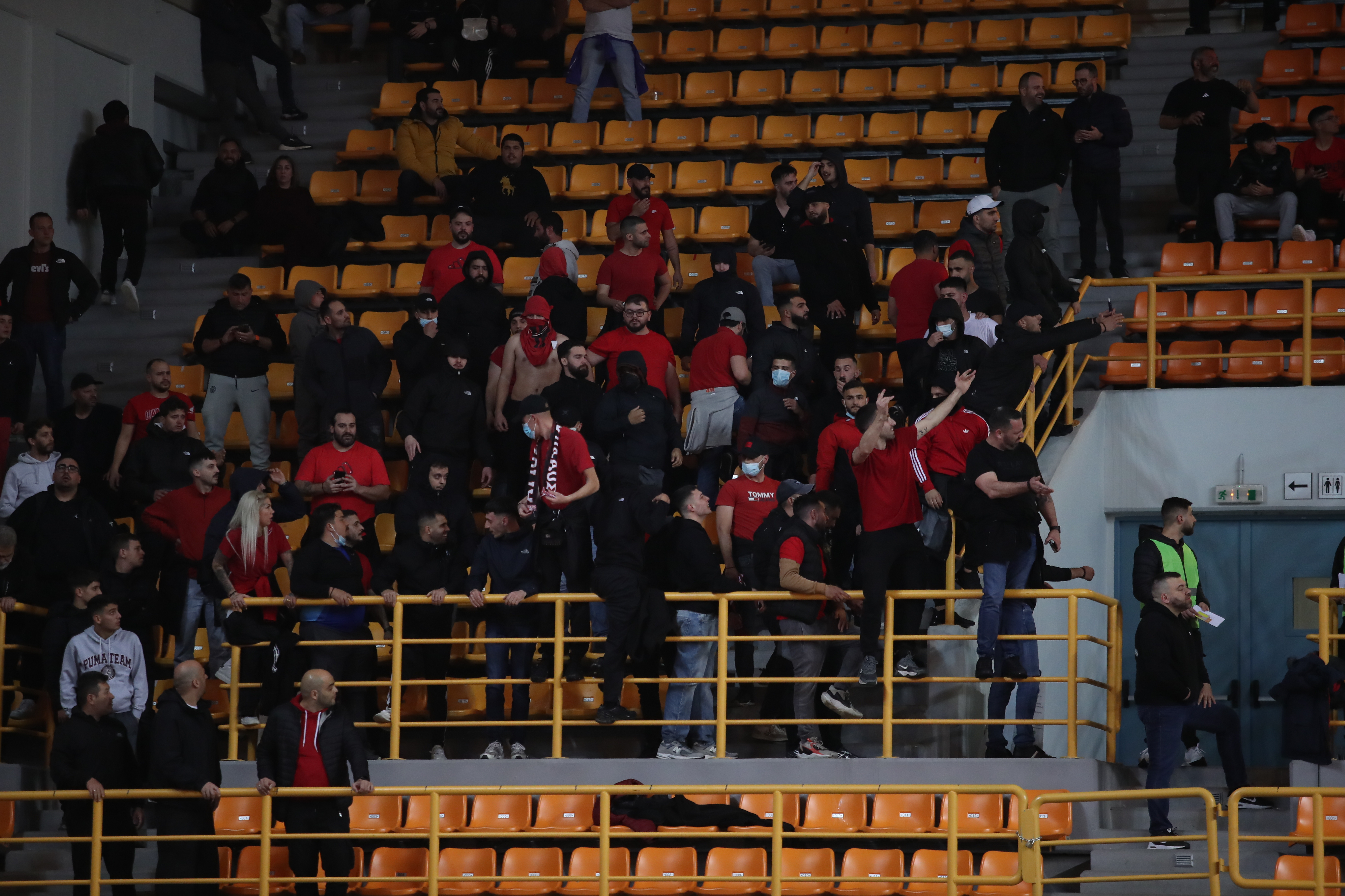 Στο κλειστό της Νέας Αλικαρνασσού βρέθηκαν οπαδοί και των δύο αιωνίων για αυτήν την σπουδαία αναμέτρηση και μάλιστα πολλοί από αυτούς παρακολούθησαν το παιχνίδι από το ίδιο πέταλο.