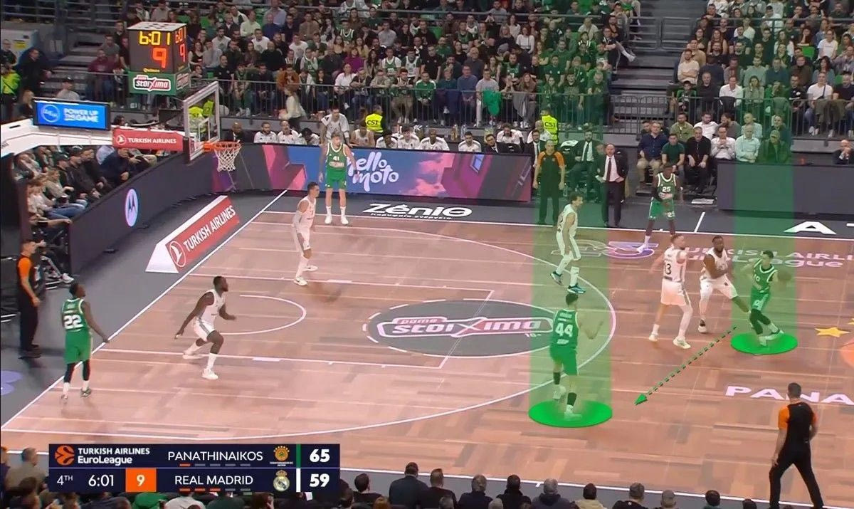 Η ικανότητα των Πλάις και Μήτογλου σε καταστάσεις Pick and Pop (όπου κάνουν σκριν και μετά βγαίνουν στο τρίποντο) δίνει άλλα στοιχεία στο παιχνίδι του Παναθηναϊκού AKTOR, που έχει πληγώσει αρκετές φορές στο παρελθόν τον Ολυμπιακό με αυτό τον τρόπο. Το δε φορμάρισμα του Μήτογλου, όπως φάνηκε και κόντρα στην Ρεάλ, έρχεται την κατάλληλη στιγμή. Ιδού ένα παράδειγμα: