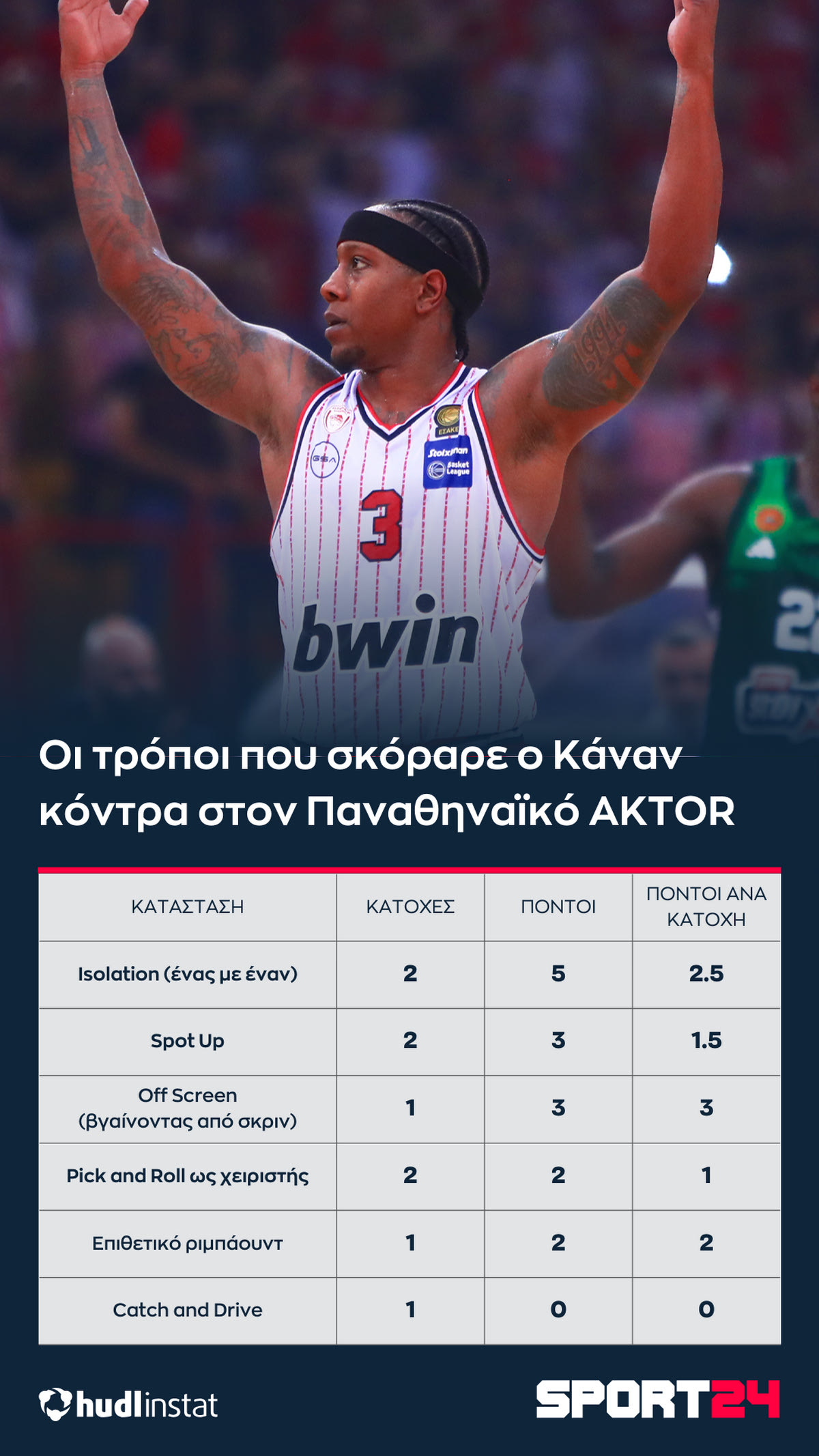 Ολυμπιακός – Παναθηναϊκός AKTOR: Το δίδυμο Κάναν, Γουίλιαμς-Γκος, το +12 της βασικής πεντάδας και η αλλαγή στην άμυνα στο Pick and Roll