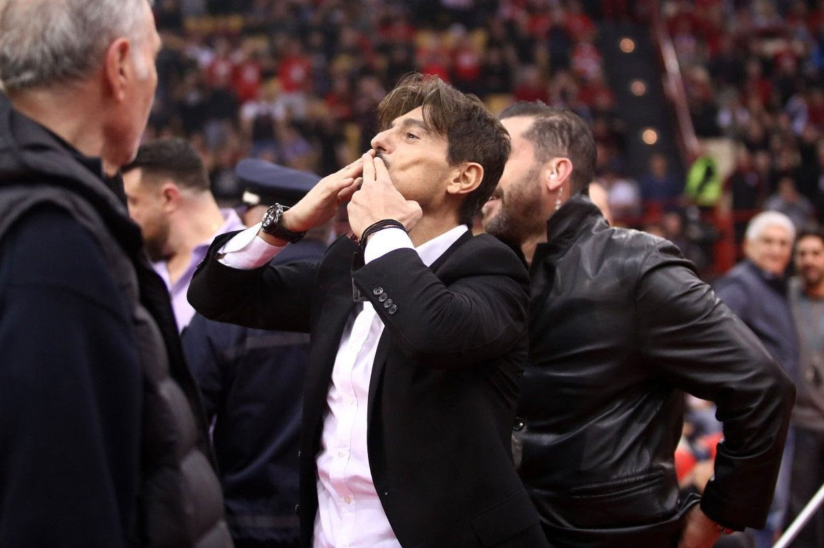 Ο Δημήτρης Γιαννακόπουλος έκανε την εμφάνισή του στο παρκέ του γηπέδου λίγα λεπτά πριν το τζάμπολ του αγώνα για να παρακολουθήσει από κοντά τη μεγάλη αναμέτρηση.