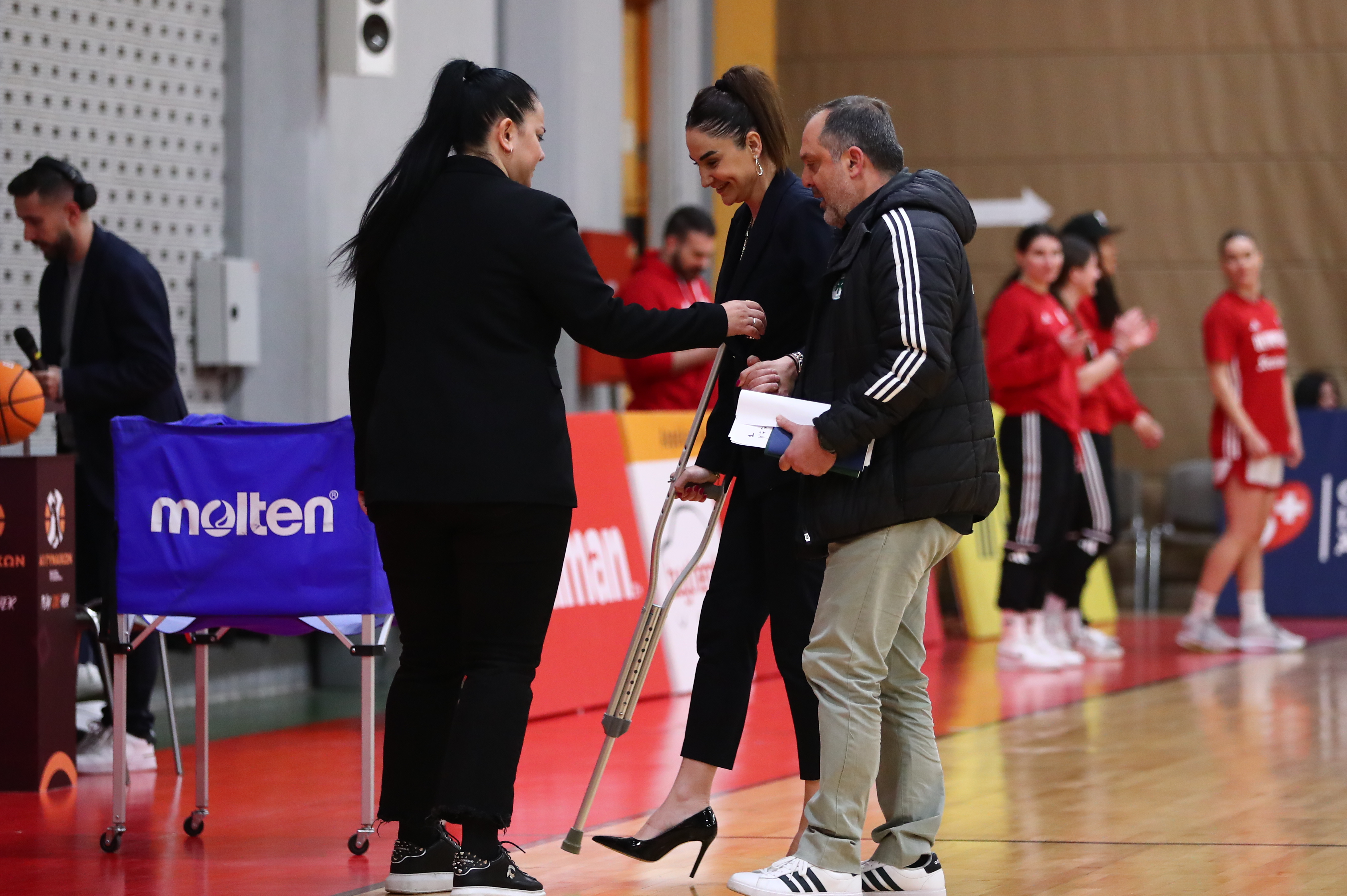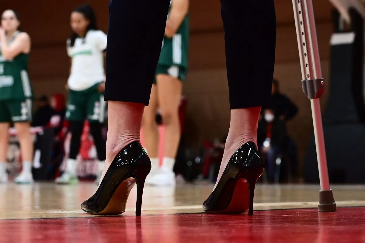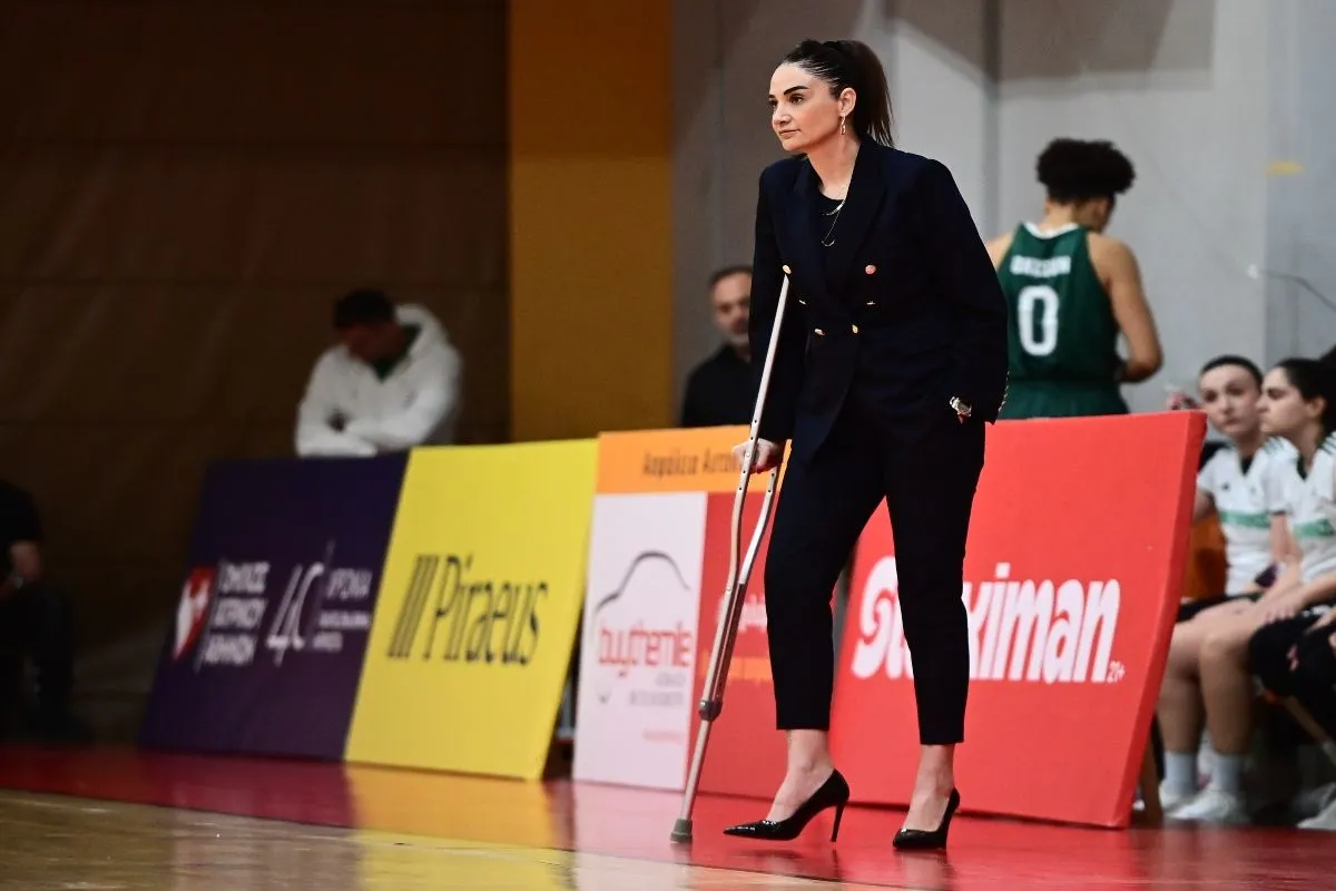 Η προπονήτρια των πρασίνων εμφανίστηκε στο γήπεδο με πατερίτσα λόγω τραυματισμού, ωστόσο αυτό δεν την εμπόδισε να φορέσει ψηλοτάκουνα, όπως κάνει σε κάθε εμφάνισή της στο παρκέ.