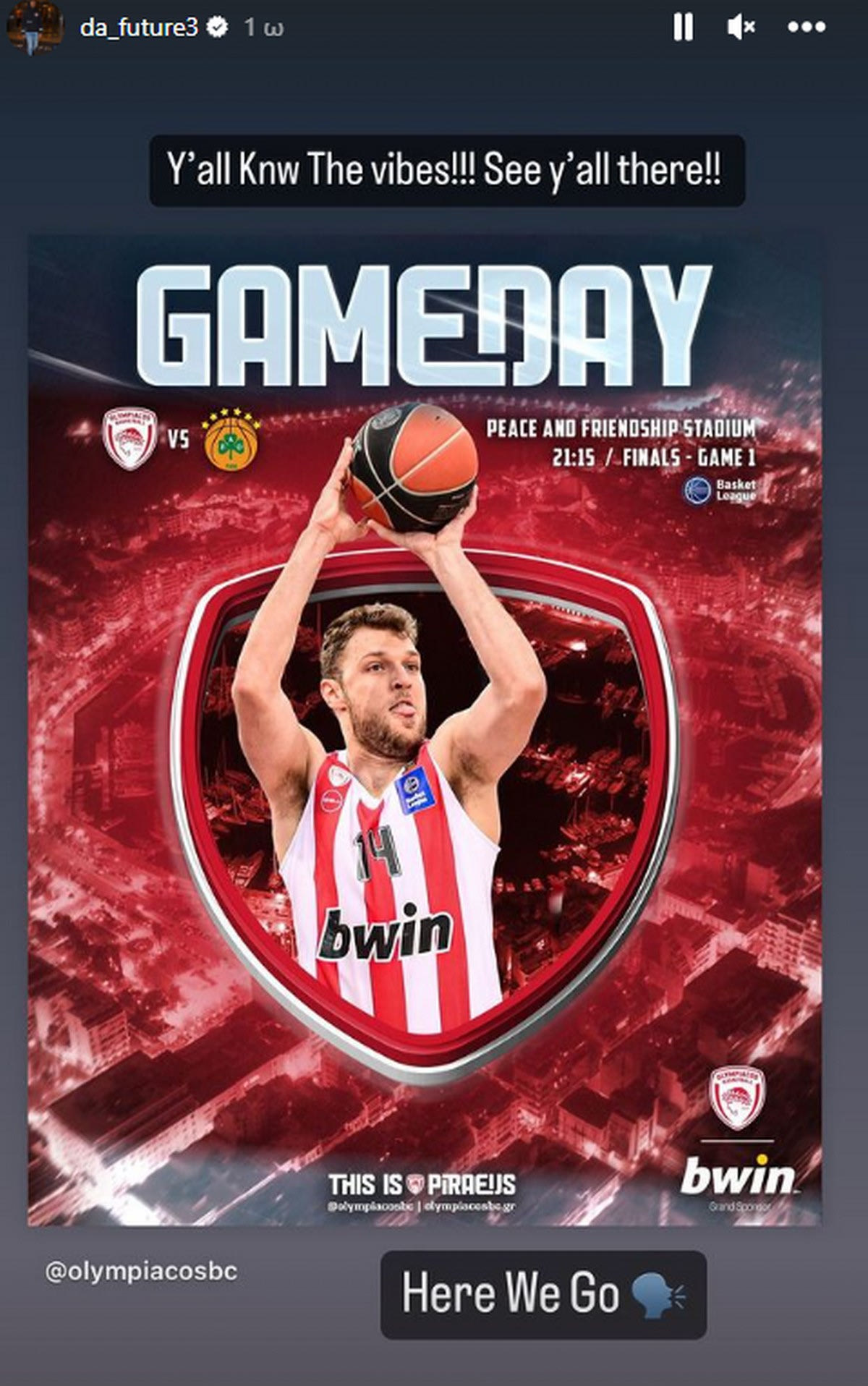Ο Αϊζέια Κάναν - ο οποίος δεν έχει δικαίωμα συμμετοχής στους τελικούς με τον Παναθηναϊκό - φρόντισε με δύο post στο Instagram να δείξει στον κόσμο ότι ανυπομονεί για το σημερινό (4/6) Game 1 των τελικών (21:15, ΕΡΤ3 και LIVE από το SPORT24).