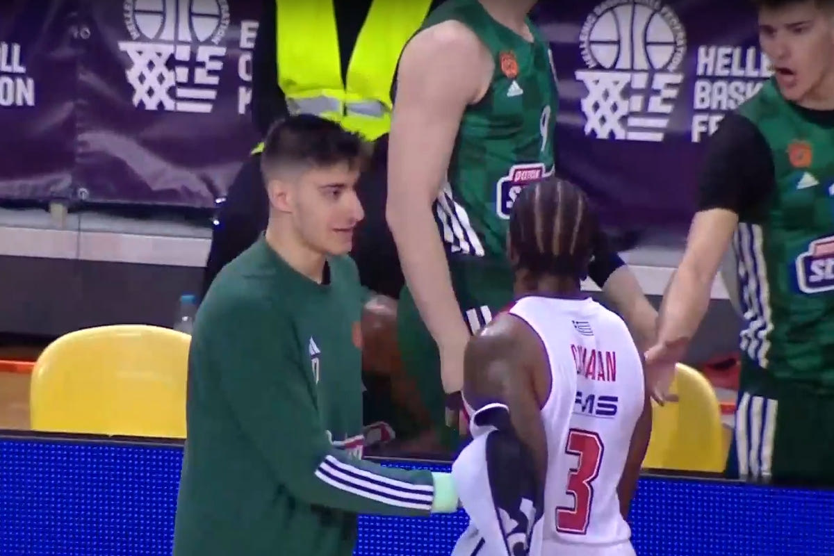 Μετά το εύστοχο τρίποντο για το 52-40 του Ολυμπιακού ο Αϊζέια Κάναν επέλεξε να στρέψει το βλέμμα του προς τον πάγκο του Παναθηναϊκού, προκαλώντας την αντίδραση των αντιπάλων του.
