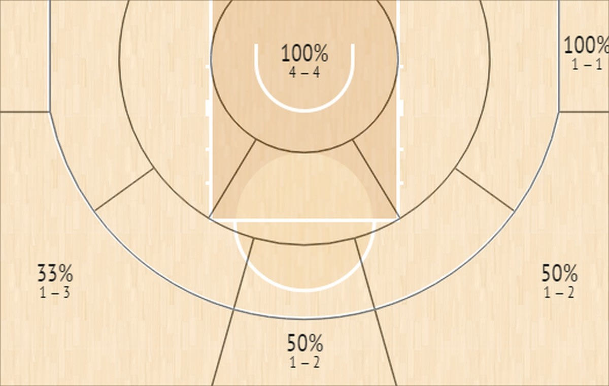 Ο Σέρβος σημείωσε 16 από τους 24 πόντους στου στην τέταρτη περίοδο. Ήταν όμως υπεύθυνος για 22 πόντους στο ίδιο διάστημα, αφού οι δύο ασίστ του (σε Παπαπέτρου και Κασελάκη) έδωσαν άλλους 6 πόντους. Το δε Shot Chart του δείχνει την πολύπλευρη απειλή του.