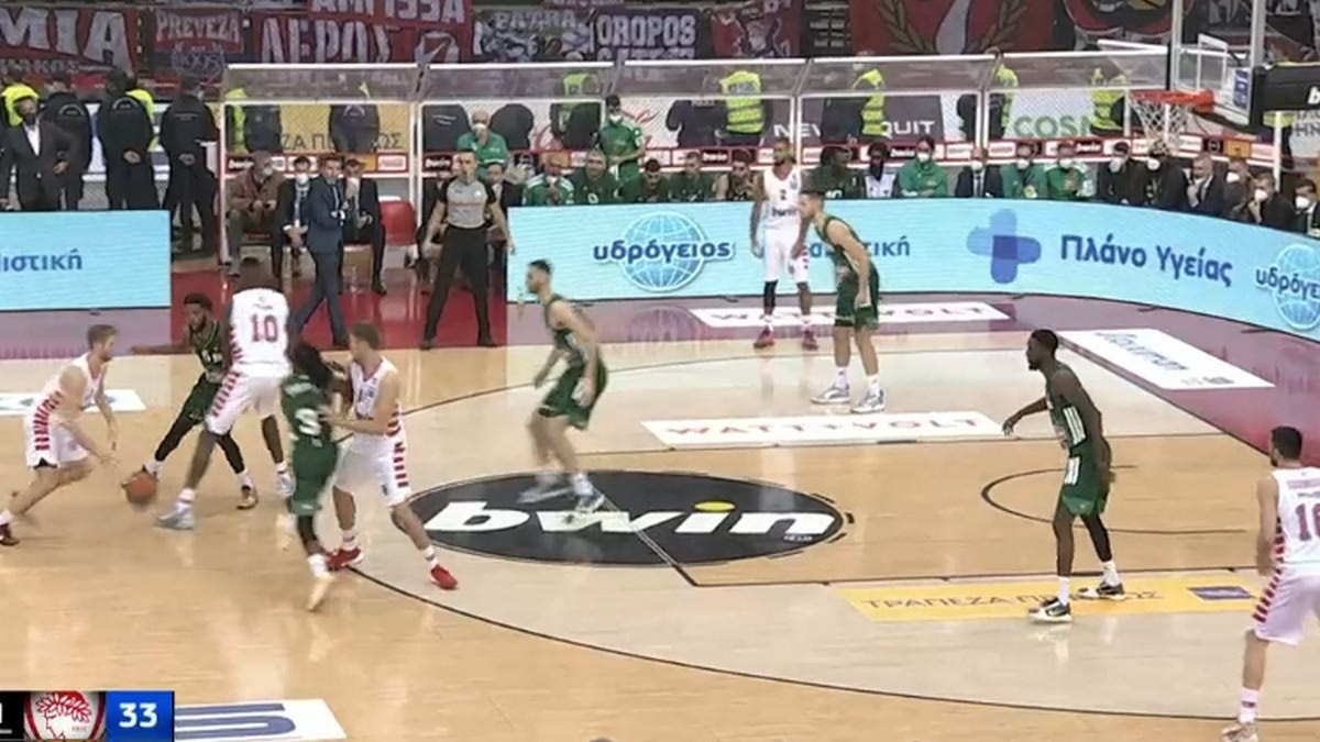 Την ίδια στιγμή, η άμυνα του Ολυμπιακού στην τρίτη περίοδο προκάλεσε τεράστια προβλήματα στον Παναθηναϊκό. Οι “ερυθρόλευκοι” άφησαν στην άκρη την λογική του “Flat” στο Πικ εν Ρολ – αλλά και του “ICE” που εφάρμοσαν κυρίως στον Ντάριλ Μέικον – και επέλεξαν να αμυνθούν με αλλαγές. Παράλληλα, έκλειναν τους χώρους στους χειριστές της μπάλας με βοήθειες από τον πιο κοντινό παίκτη, αφού ο Παναθηναϊκός δεν είχε καλές αποστάσεις με τον Οκάρο Γουάιτ στο παρκέ. Κάπως έτσι ξέφυγαν στο σκορ. Τότε όμως ανέλαβε δράση ο Νέντοβιτς.