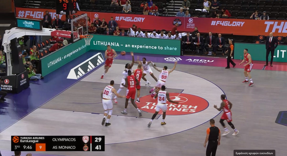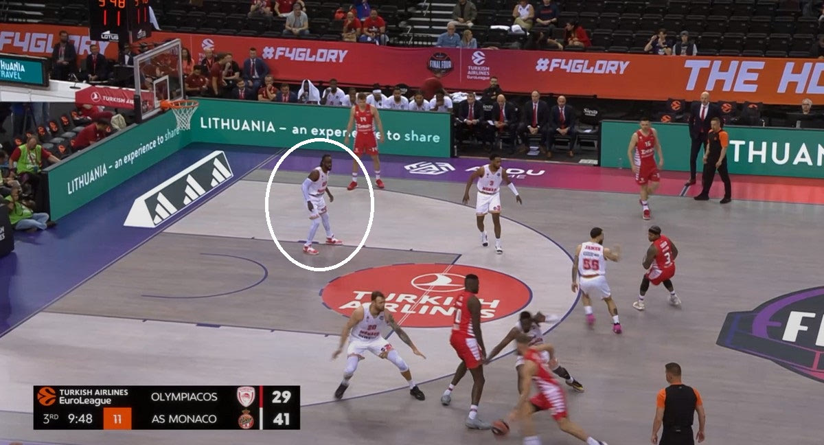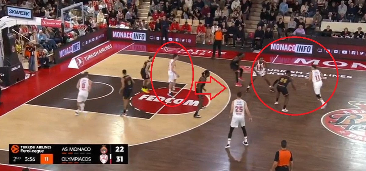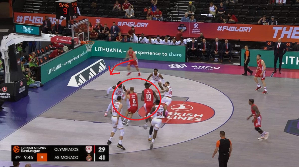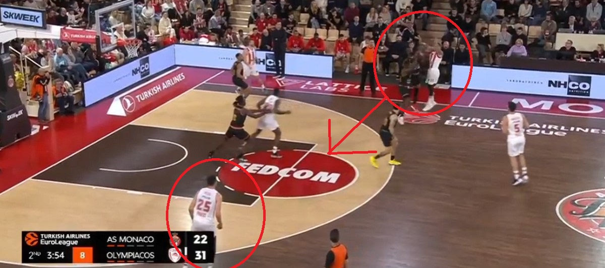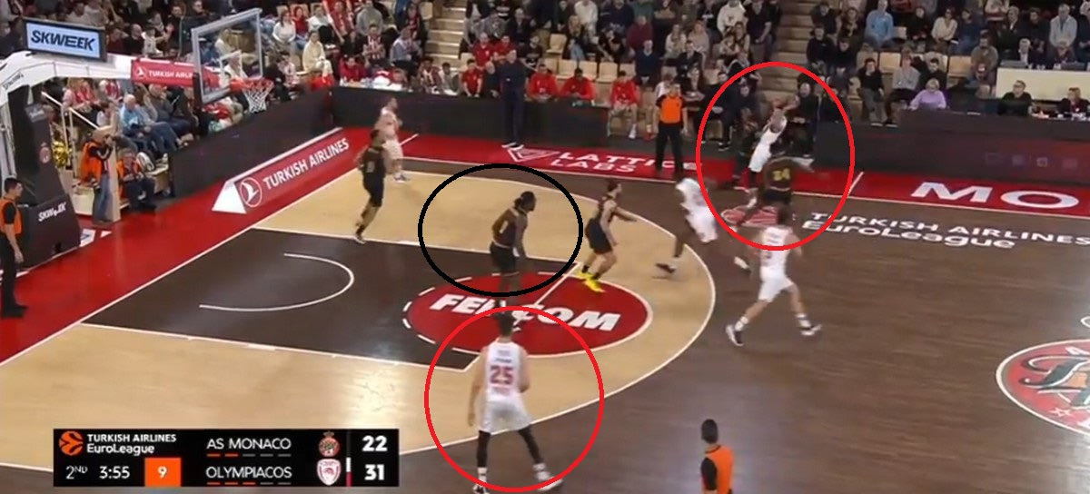 Ο Ολυμπιακός όμως έχει αντιμετωπίσει τέτοιες άμυνες φέτος (ειδικά κόντρα στην Μονακό) και έχει αντιδράσει αναλόγως. Ιδού ένα παράδειγμα από έναν αγώνα κόντρα στους Μονεγάσκους:
