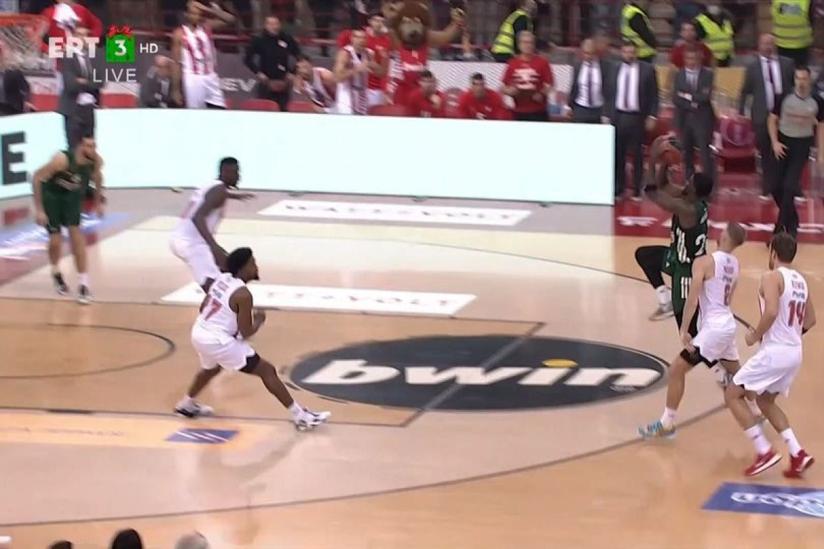 Με 4″ να απομένουν για την κόρνα της λήξης ο Αμερικανός διέσχισε το γήπεδο και αποφάσισε αντί να πάει κοντά στο καλάθι να σηκωθεί για τρεις, ωστόσο, το σουτ δεν βρήκε στόχο και ο Ολυμπιακός επικράτησε με 68-66.