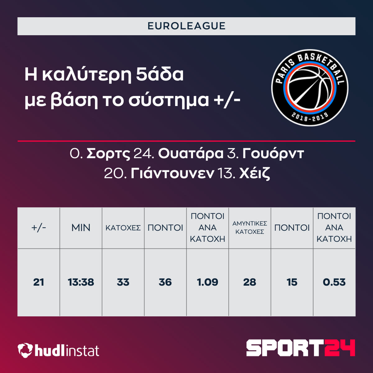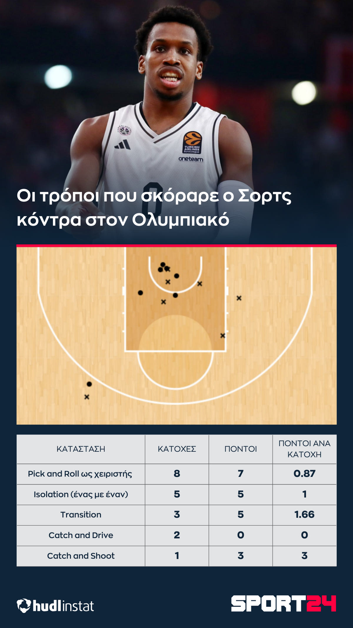 Ολυμπιακός – Παρί: Οι 40 πόντοι που πρόσφερε ο Σορτς, το απίθανο +21 της βασικής πεντάδας των Γάλλων και η παγίδα του γρήγορου ρυθμού