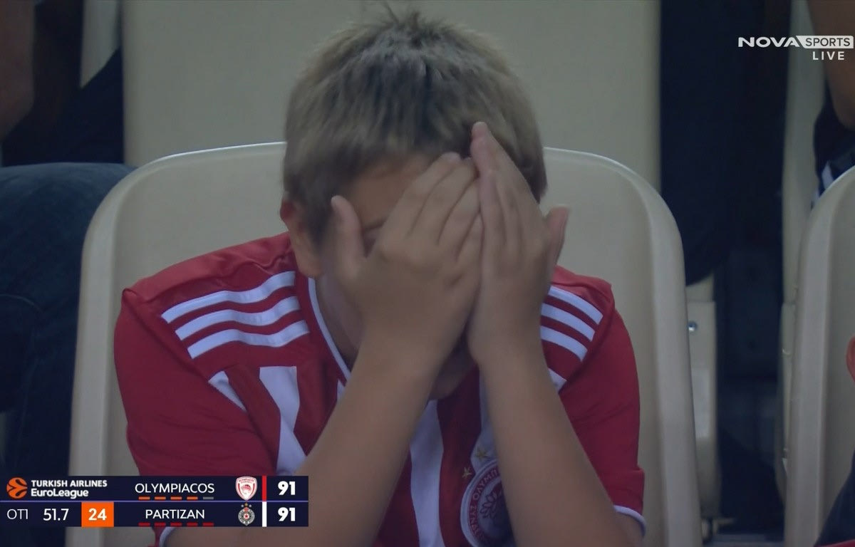 Ο Ολυμπιακός λύγισε την Παρτίζαν στην παράταση, επικρατώντας με 98-94. Το φινάλε ήταν συναρπαστικό με τους φίλους των ερυθρολεύκων να ζουν έντονα και με αγωνία το ματς. Μάλιστα οι μικροί φίλοι των ερυθρολεύκων δεν είχαν το κουράγιο ούτε να δουν τις κρίσιμες βολές του Νίκολα Μιλουτίνοβ.