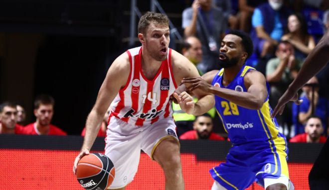 Εξαιρετικός Σάσα Βεζένκοβ στο πρώτο μέρος του αγώνα του Ολυμπιακού με το Περιστέρι για το Stoiximan Super Cup.