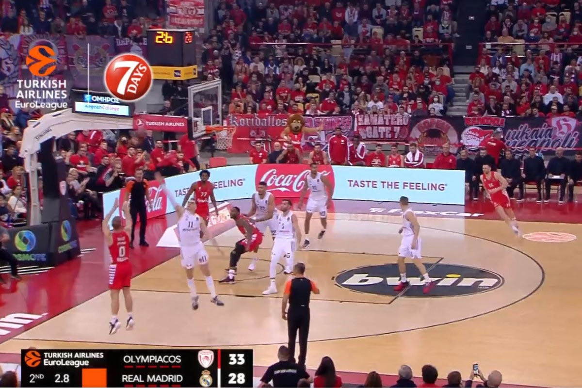Ολυμπιακός – Ρεάλ Μαδρίτης: Μεγάλο buzzer-beater τρίποντο από τον Γουόκαπ πριν το ημίχρονο