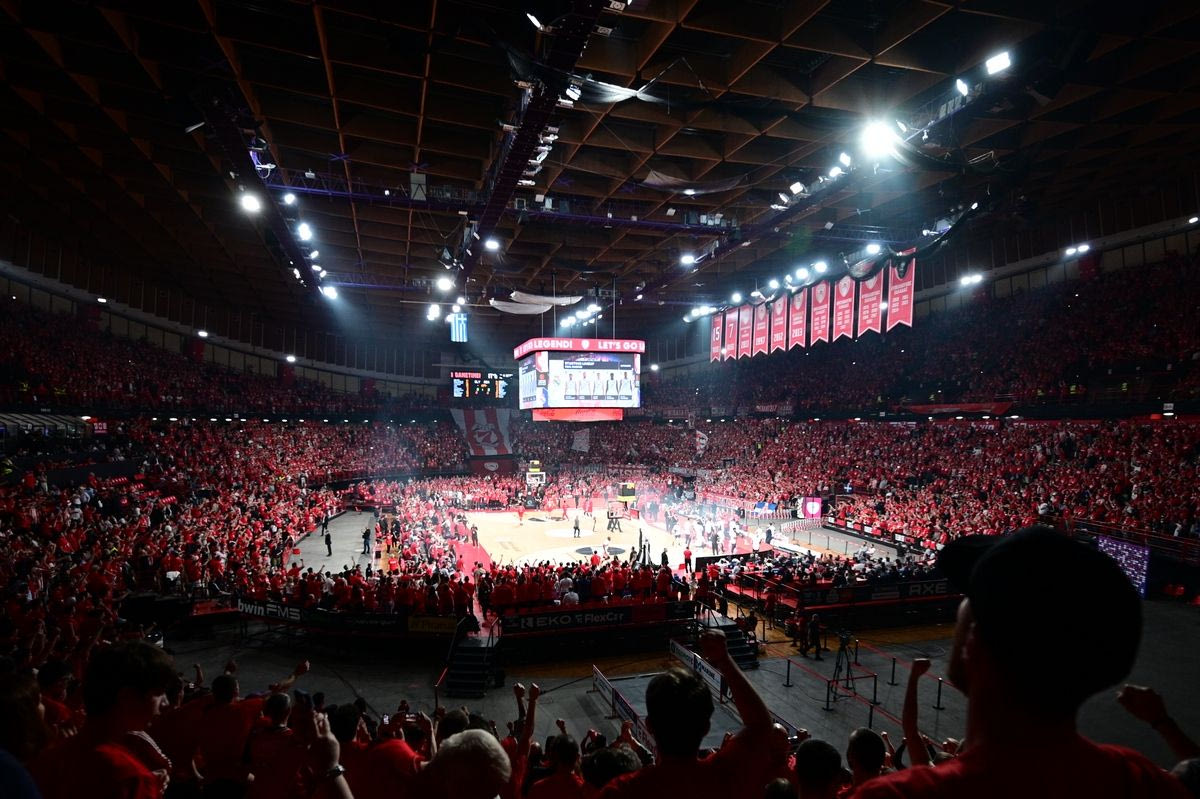 Εντυπωσιακή ατμόσφαιρα στο ΣΕΦ από τον κόσμο του Ολυμπιακού στην αναμέτρηση με τη Ρεάλ, με τους φίλους των ερυθρόλευκων να κοκκινίζουν το στάδιο με τα επετειακά μπλουζάκια.