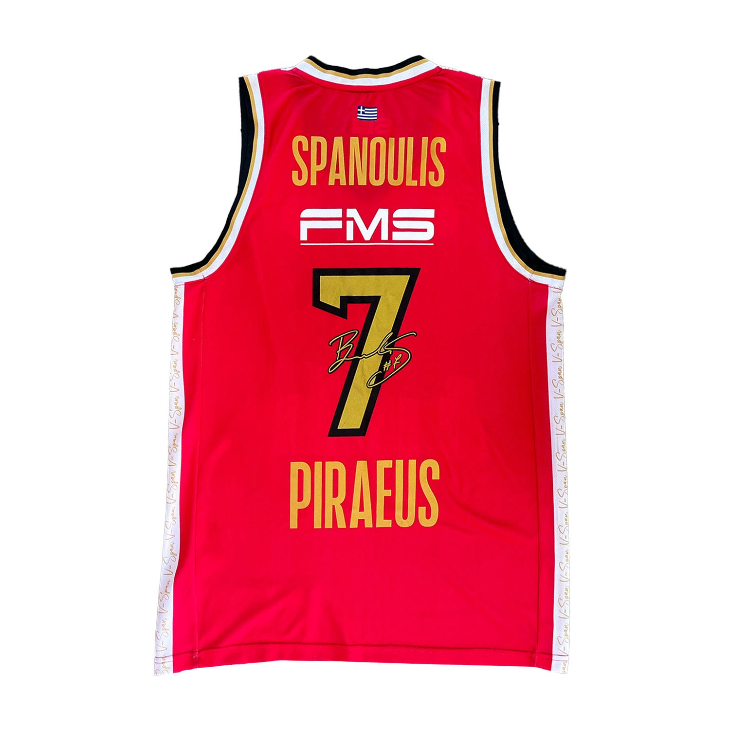 Αυτή η φανέλα θα έχει 11 κόκκινες ρίγες, όσα και τα χρόνια του Σπανούλη στον Ολυμπιακό, χρυσές λεπτομέρειες, για να αναδειχθεί το μεγαλείο του ως αθλητή και το ψευδώνυμο V-Span γραμμένο στις λευκές ρίγες.