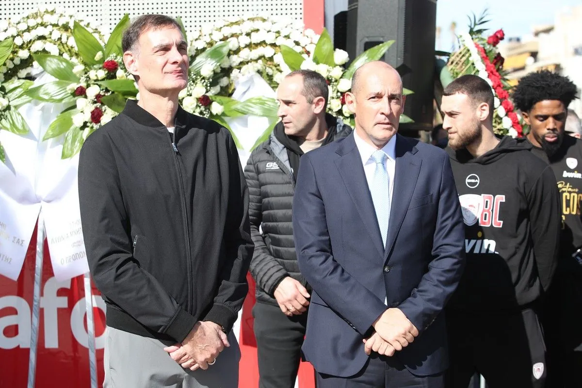 Οι διοικητικοί ηγέτες της ΚΑΕ, Παναγιώτης και Γιώργος Αγγελόπουλος, ο προπονητής, Γιώργος Μπαρτζώκας, αλλά και οι παίκτες τίμησαν τη μνήμη των θυμάτων αφήνοντας λουλούδια
