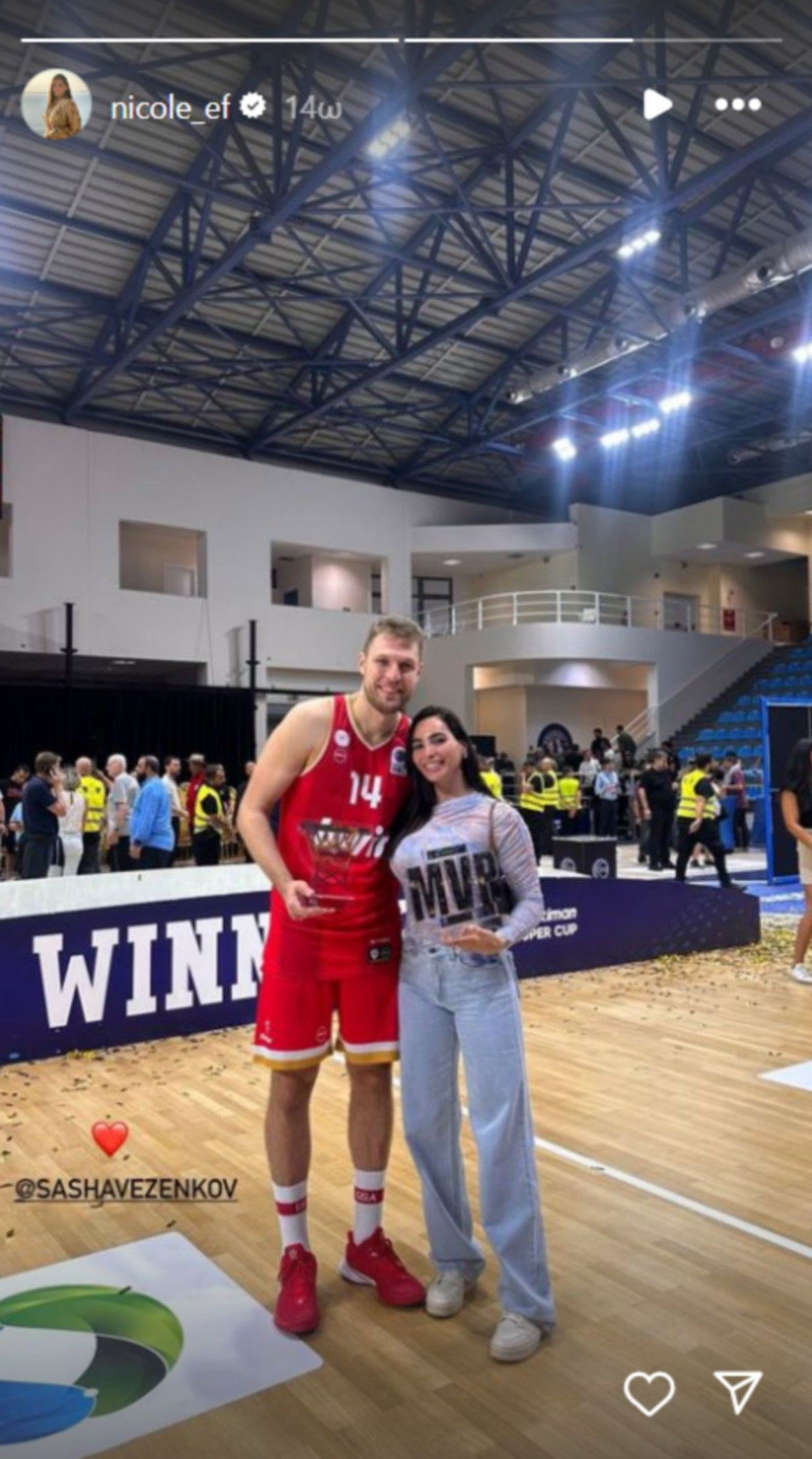 Στο πλευρό του ο Βεζένκοβ είχε την αγαπημένη του, Νικόλ Ελευθεριάδου. Η άλλοτε αθλήτρια πόλο των Πειραιωτών ταξίδεψε μέχρι το νησί της Ρόδου για να στηρίζει τον σύντροφό της.