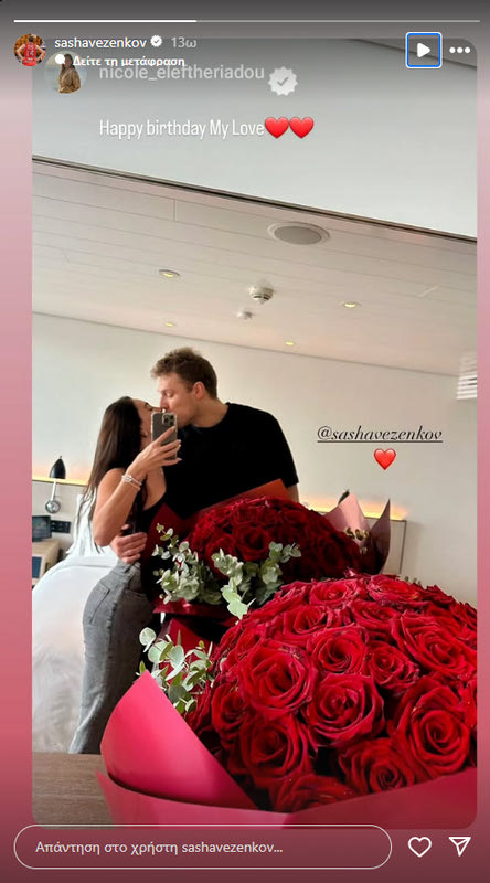 Δείτε το story της Νικόλ Ελευθεριάδου και το repost του Σάσα Βεζένκοβ: