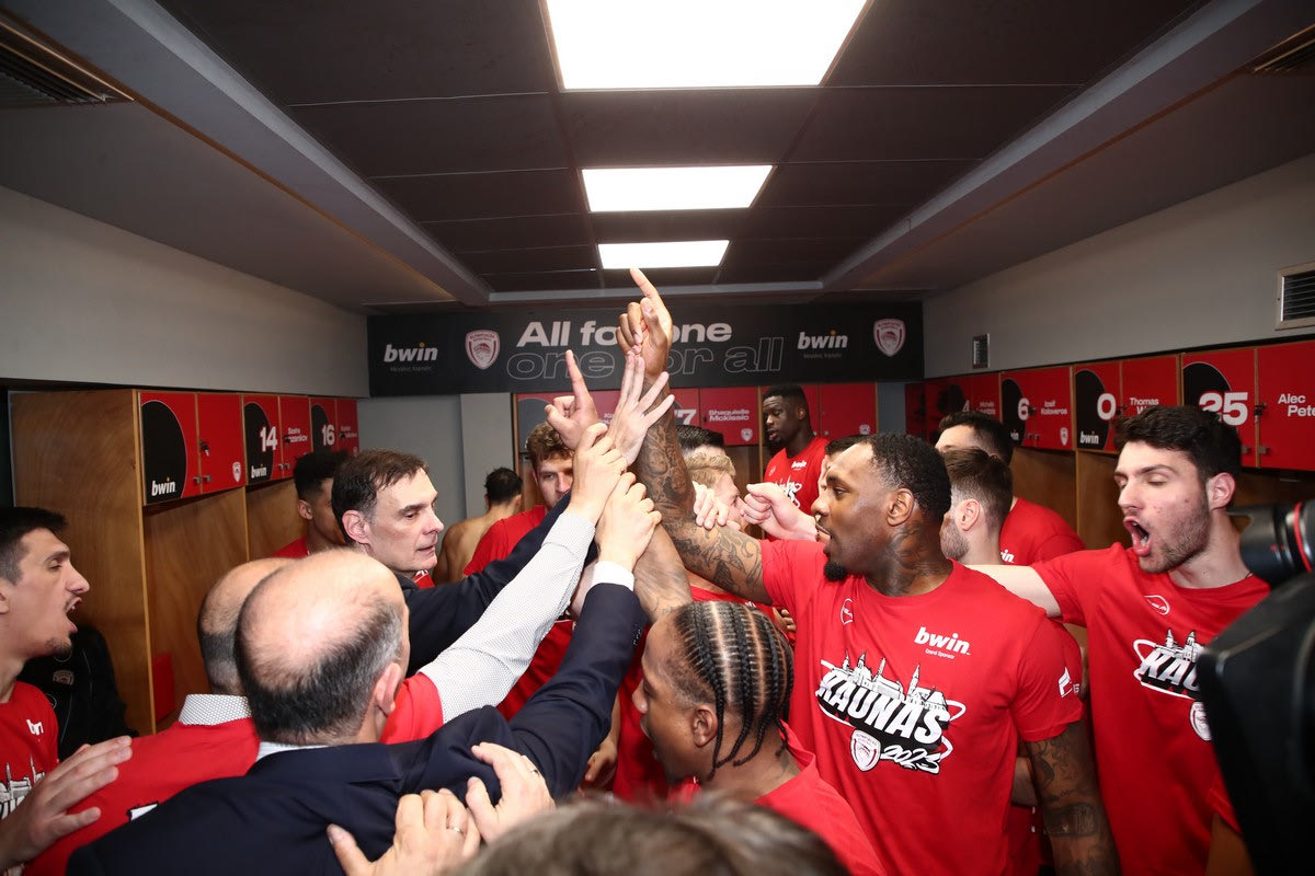 Οι παίκτες του Ολυμπιακού ξέσπασαν σε έξαλλους πανηγυρισμούς στα αποδυτήρια μετά τη νίκη επί της Φενέρ και την πρόκριση στο Final Four του Κάουνας.