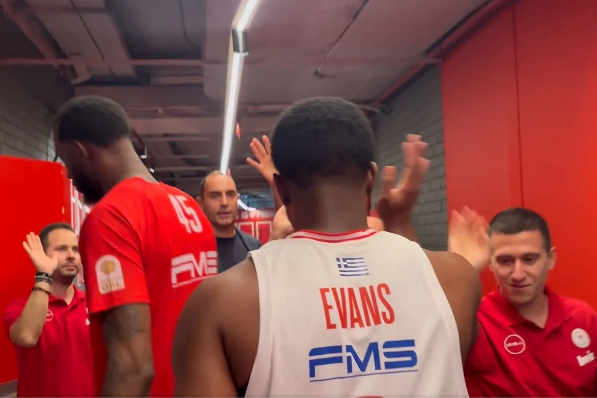 Ο Εβάν Φουρνιέ δεν έκρυψε τον ενθουσιασμό του για το ντεμπούτο του Κίναν Έβανς με τη φανέλα του Ολυμπιακού και υποδέχθηκε τον συμπαίκτη με συνθήματα στα αποδυτήρια του ΣΕΦ μετά τη νίκη επί της Καρδίτσας (102-82) στην 6η αγωνιστική της Stoiximan GBL.