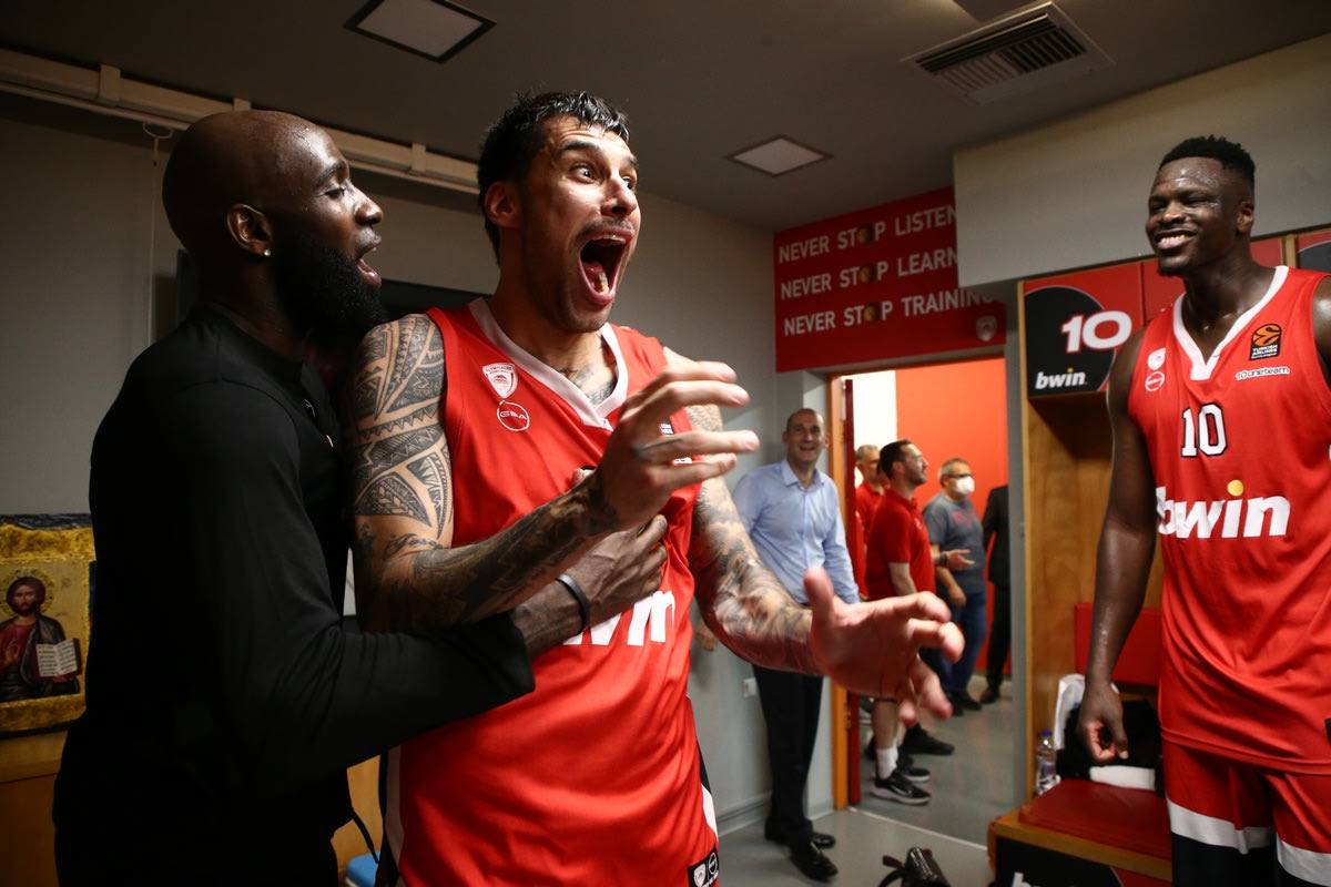 Ολυμπιακός: Το πάρτι των θριαμβευτών στα αποδυτήρια του ΣΕΦ