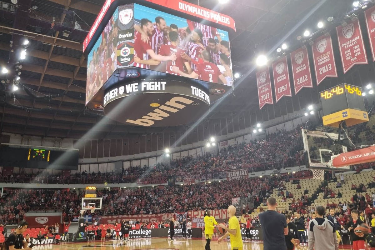 Οι άνθρωποι της ΚΑΕ Ολυμπιακός έβαλαν τους τελευταίους πόντους από τον αγώνα της Θεσσαλονίκης με τον ΠΑΟΚ στο Jumbotron, δίνοντας την αφορμή στο πέταλο των οργανωμένων (ήταν ασφυκτικά γεμάτο) να πανηγυρίσει και να τραγουδήσει για την κατάκτηση του τίτλου. Μαζί κι οι υπόλοιποι φίλοι των ερυθρολεύκων που βρίσκονταν εκείνη την ώρα στο ΣΕΦ.
