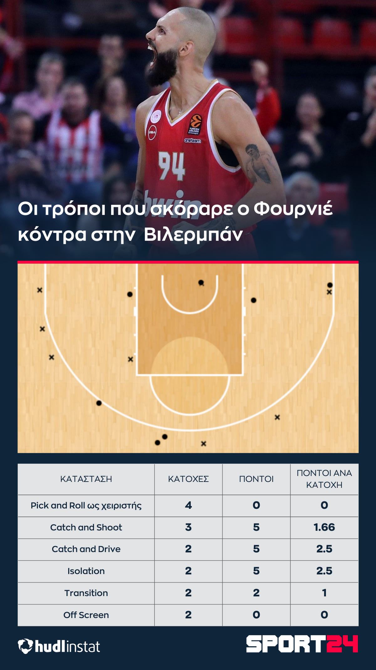 Ολυμπιακός – Βιλερμπάν: Το 5λεπτο της πεντάδας που έκρινε το ματς και η τριάδα των Φουρνιέ, Γουόκαπ, Μιλουτίνοβ