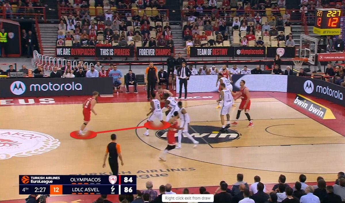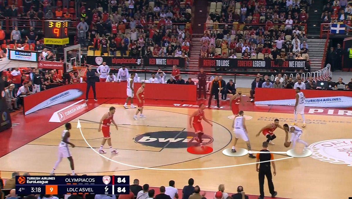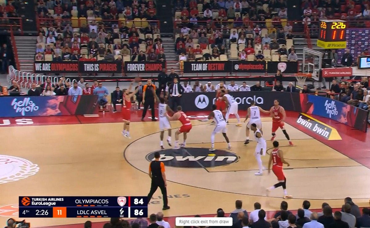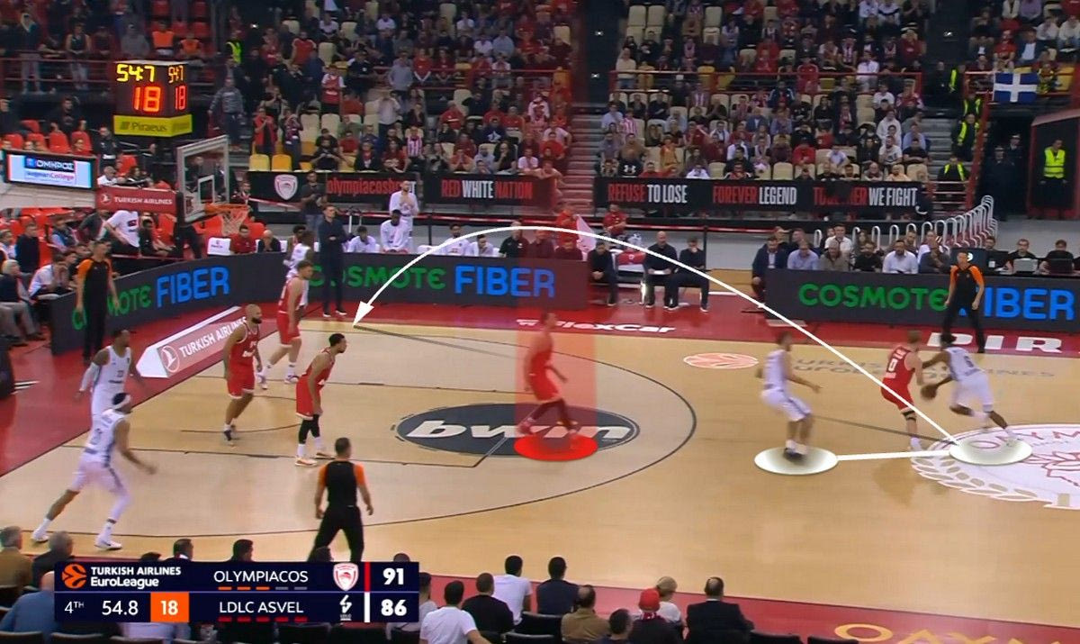Το δεύτερο τρίποντό του βέβαια ήταν ίσως ακόμα πιο σημαντικό. Κι αυτό γιατί έδωσε προβάδισμα στον Ολυμπιακό με 87-86. Ο νατουραλιζέ γκαρντ έβλεπε την Βιλερμπάν να παίζει under στα Pick and Roll που έστηνε (ο γκαρντ έμενε πίσω, δίνοντας το σουτ). Με 2.5 λεπτά να μένουν για το φινάλε αποφάσισε να το εκμεταλλευτεί. Κάλεσε για σκριν τον Βεζένκοβ – ξέροντας ότι η Βιλερμπάν θα εστιάσει στον σταρ του Ολυμπιακού. Και έχοντας σχεδόν δύο μέτρα χώρο μπροστά του ευστόχησε σε τρίποντο. Ιδού: