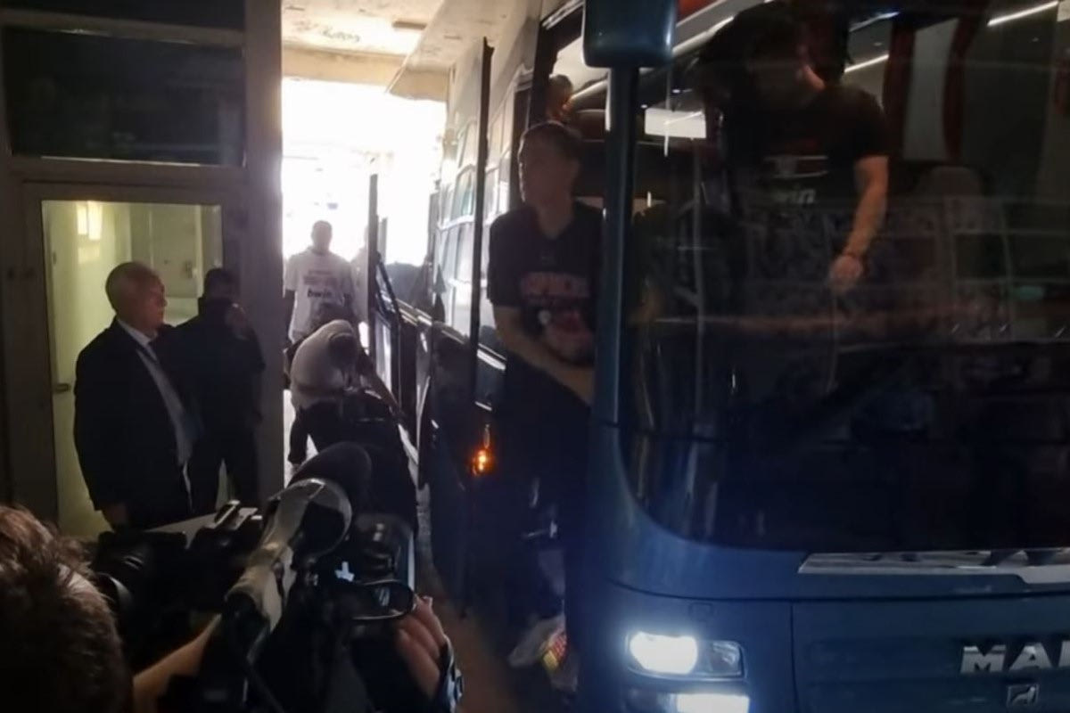 Περίπου δύο ώρες πριν από το τζάμπολ του Game 2 (21:15, ΕΡΤ3 και LIVE από το SPORT24) των τελικών της Basket League έφτασε στο ΟΑΚΑ η αποστολή του Ολυμπιακού. Ο Γιώργος Μπαρτζώκας και οι παίκτες του δεν συνάντησαν το παραμικρό εμπόδιο κατά την άφιξή τους και μπήκαν απρόσκοπτα στο γήπεδο, προκειμένου να ετοιμαστούν για το δεύτερο παιχνίδι με τον Παναθηναϊκό.
