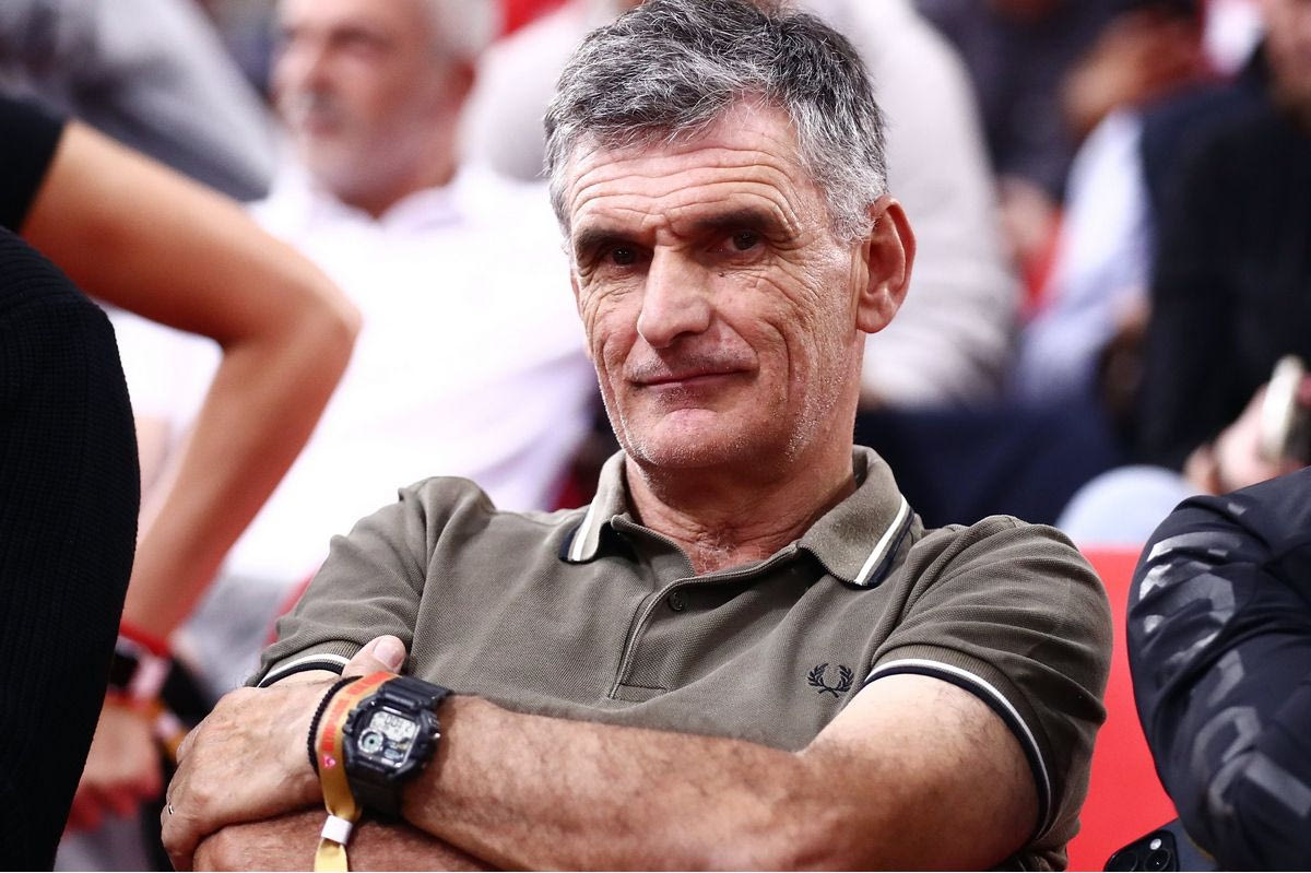 Η κάμερα εντόπισε τον Βάσκο προπονητή της ποδοσφαιρικής ομάδας των ερυθρόλευκων να κάθεται δίπλα στο παρκέ, πριν από την έναρξη του μεγάλου αγώνα των Πειραιωτών με τους Μαδριλένους, με το στιγμιότυπο να αναδεικνύεται και από τον φακό του SPORT24.